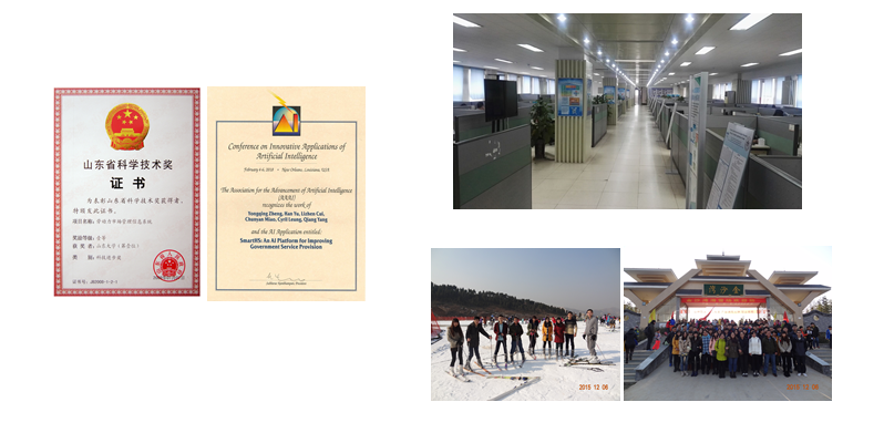 中心国际交流与合作不断创新,依托电子商务交易技术国家工程实验室,与新加坡南洋理工大学、加拿大英属哥伦比亚大学等联合发起成立以人工智能为纽带的学科交叉研究国际联盟——众智科学与工程国际联盟(Association of Crowd Science and Engineering ,ACE)。目前,众智科学与工程国际联盟通过众智科学与工程国际学术会议(ICCSE)、众智科学国际期刊(IJCS)、国际合作研究与人员交流等形式,已经成为高端国际人工智能人才的聚集平台。国际合作成果获得国际认可,发表在AAAI、IJCAI等人工智能领域的国际顶级会议,以及《自然》旗下《科学报告》、《科学数据》等期刊。2018年,基于山大地纬智慧人社为背景的人工智能政务服务关键技术和系统,获得AAAI创新应用奖,也是该年度唯一的以大陆研究者为主的研究成果。与人工智能国际顶尖名校新加坡南洋理工大学成立SDU-NTU人工智能国际联合研究院,成为人工智能领域的高端人才汇聚中心和高端科学研究聚集中心。