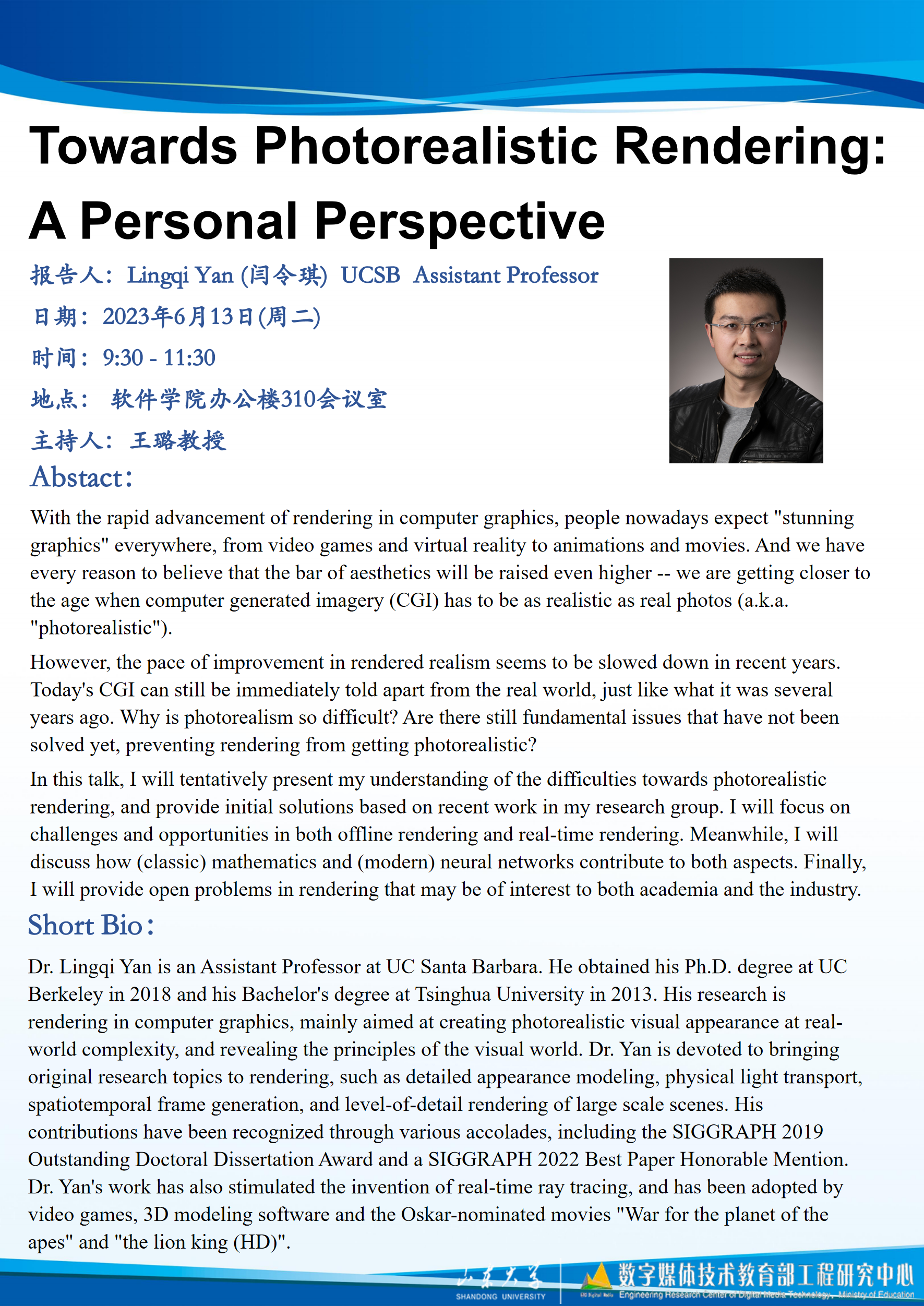 【学术预告】Towards Photorealistic Rendering: A Personal Perspective