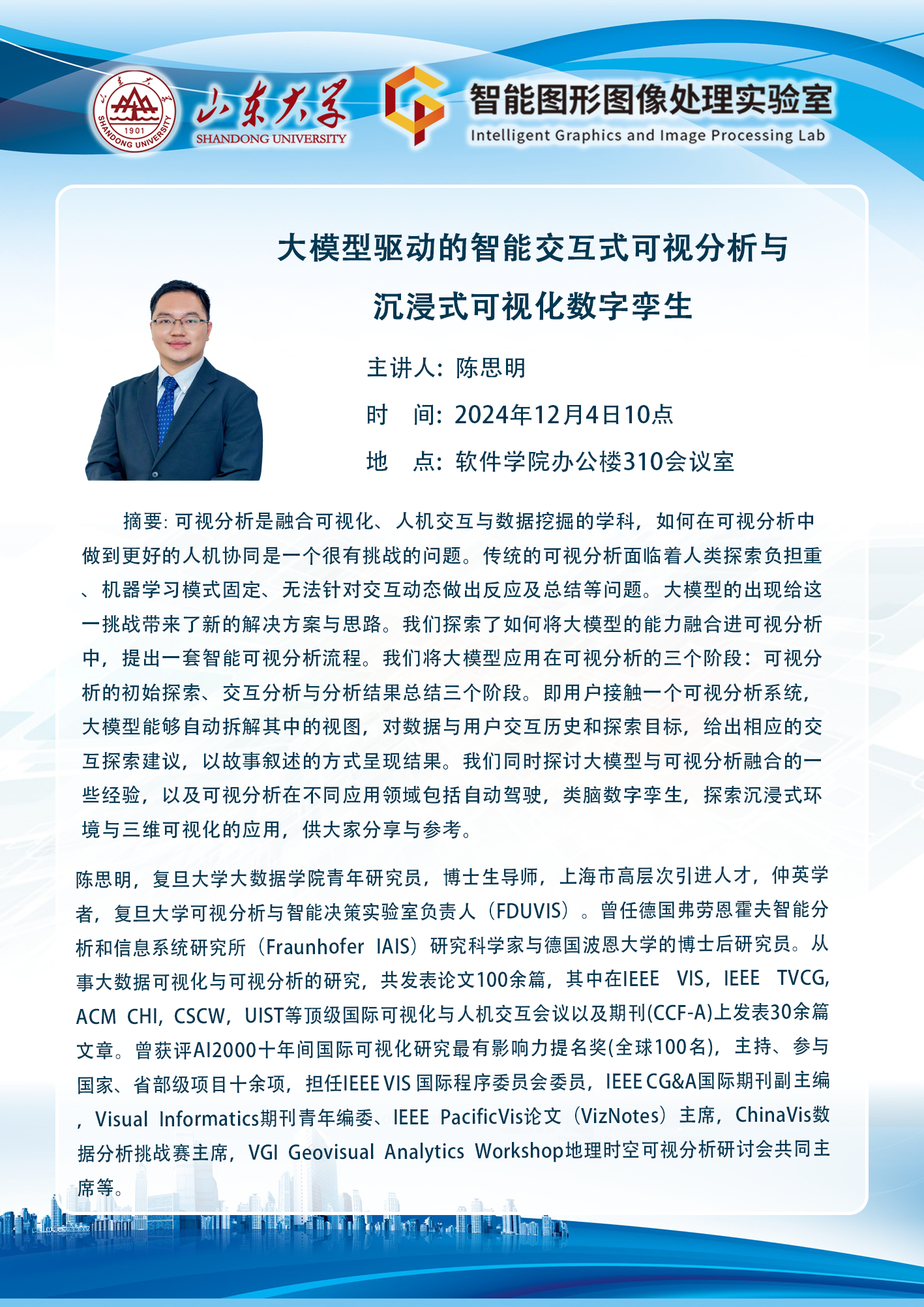 【学术预告】大模型驱动的智能交互式可视分析与沉浸式可视化数字孪生
