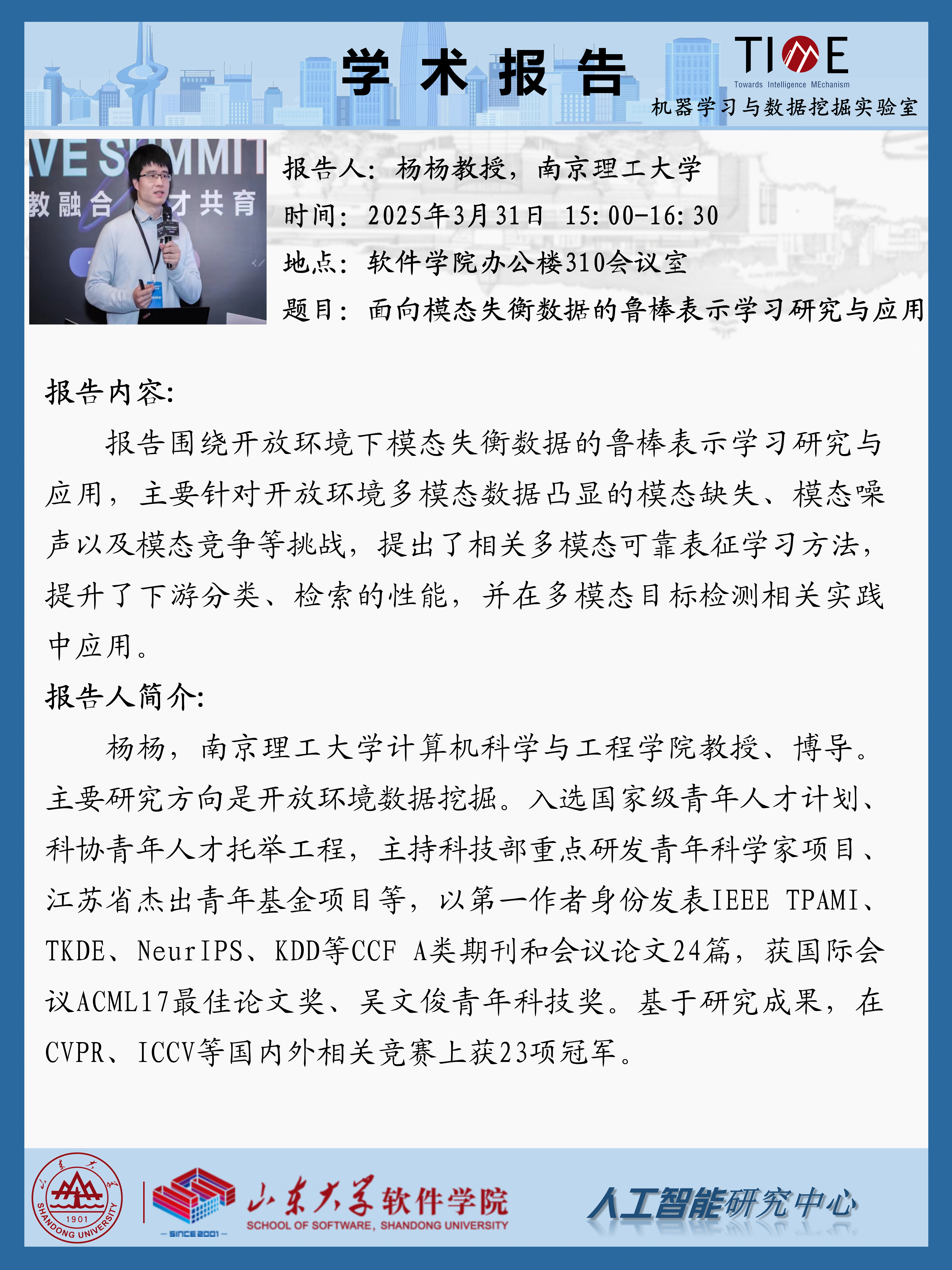 【学术预告】面向模态失衡数据的鲁棒表示学习研究与应用