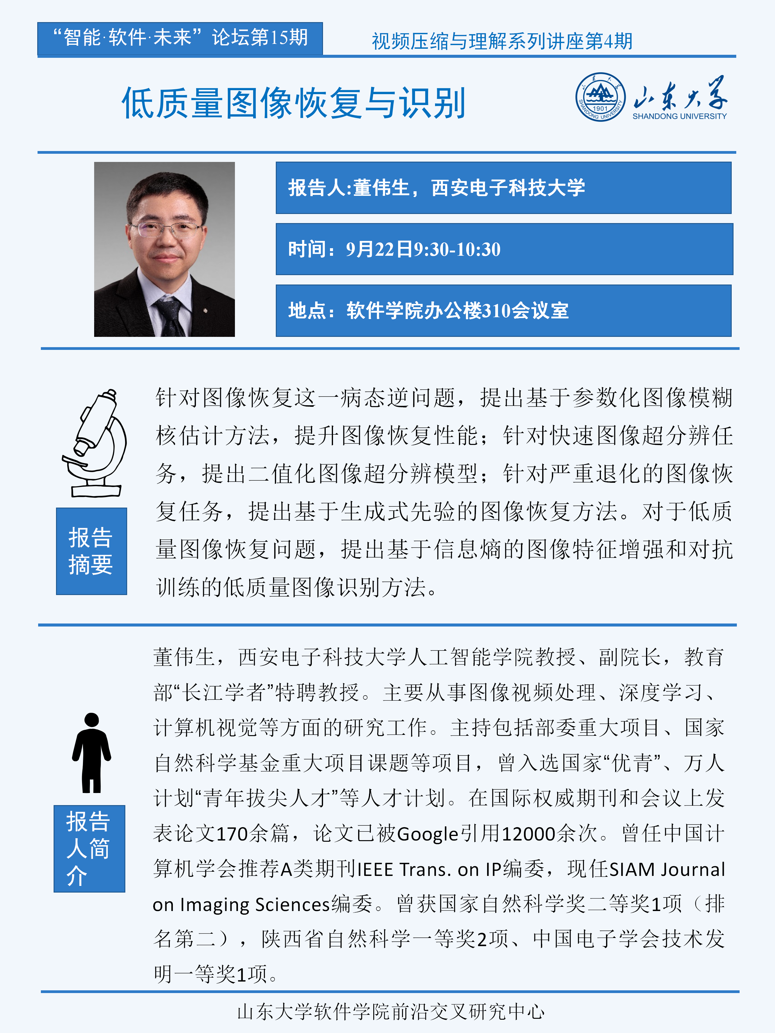 软件学院“智能·软件·未来”论坛第15期:视频压缩与理解系列讲座第4期:低质量图像恢复与识别
