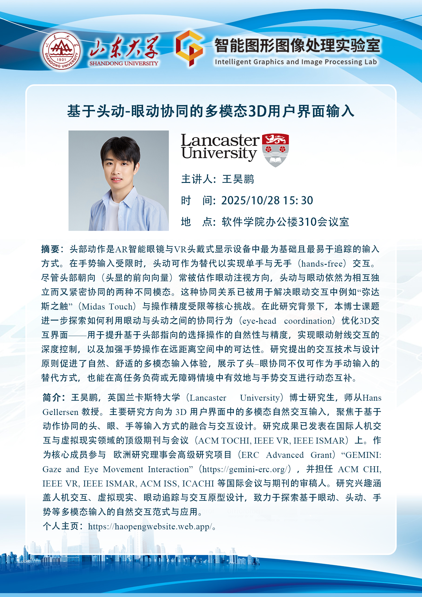 软件学院“智能・软件・未来”论坛第17期:基于头动-眼动协同的多模态3D用户界面输入