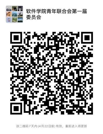 请符合条件的教职工于4月20日前填写《软件学院青联第一届委员会委员信息统计表》并扫描二维码进入微信群。