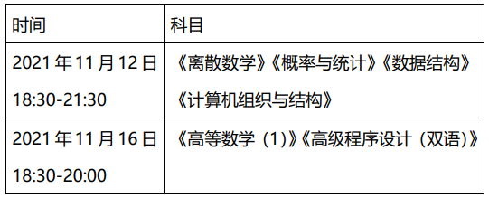 二、 考试时间和考试科目安排