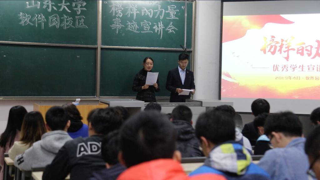 4月11日,软件学院“榜样的力量”事迹宣讲会在软件园校区举行,“榜样的力量”道德风尚奖获得者徐晓峰、“十佳青年志愿服务组织”代表种政、2018年校长奖学金获得者李鹏泽、山东省优秀学生与国家奖学金获得者姜美锐来到现场,向大一大二学生讲述经历,传授经验。
