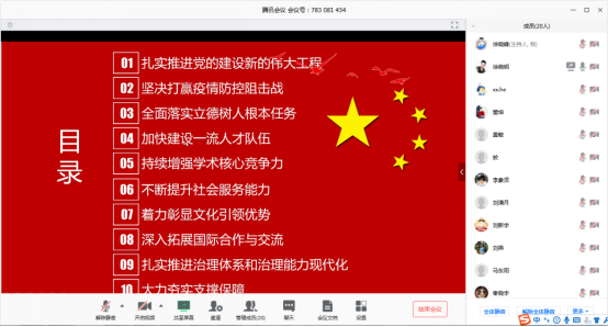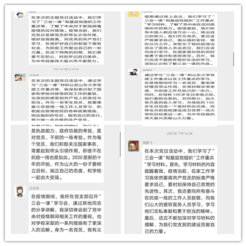 学习结束,参会的全体党员及入党积极分子在线上发表学习体会进行讨论交流。