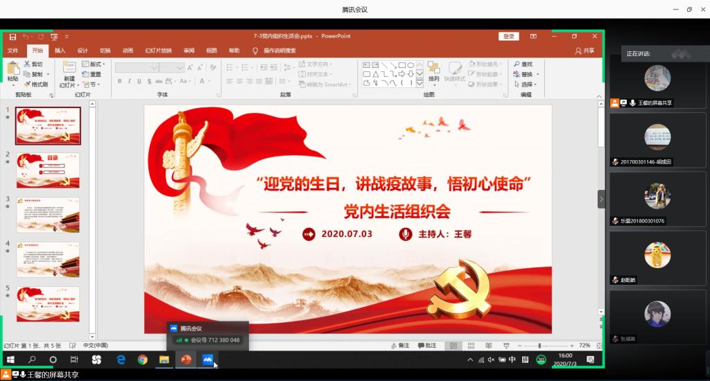 7月3日下午,软件学院举办“迎党的生日,讲战疫故事,悟初心使命”党内生活会,软件学院本科全体学生党员、预备党员参与了本次活动。