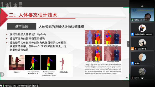 马利庄教授以“复杂环境人脸识别与姿态分析技术”为题目,面向人脸识别技术、行为姿态估计方面的技术挑战,展示了深度学习技术与理论在相关领域的突破,以及人物理解技术在公共安全、交互娱乐方面应用成果,展示计算机视觉技术无比广阔的应用前景。