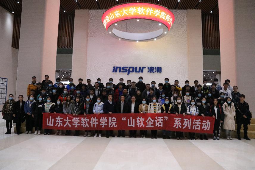 2020年12月9日,软件学院党委副书记吴天柱带领学院新生辅导员和70名研究生与本科生走进浪潮集团参观交流,浪潮集团副总裁刘伟华、招聘总监李维、爱城市网技术总监赵海兴出席此次活动。