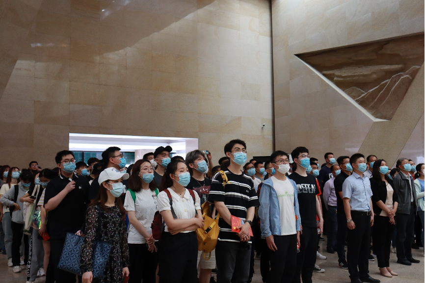 九点五十分,校车到达目的地,同志们自觉排成四路纵队,在鲁中抗日战争展览馆前集合,等待入馆。在等待过程中,听到周围小学生组成的参观团队传来动听的童声合唱,青年党员们跃跃欲试。在老师们的带领下,同志们一起高唱taptap点点体育校歌《我的山大我的家》以及爱国歌曲《我和我的祖国》。美妙动听而富有朝气的歌声收获了周边群众的阵阵喝彩。