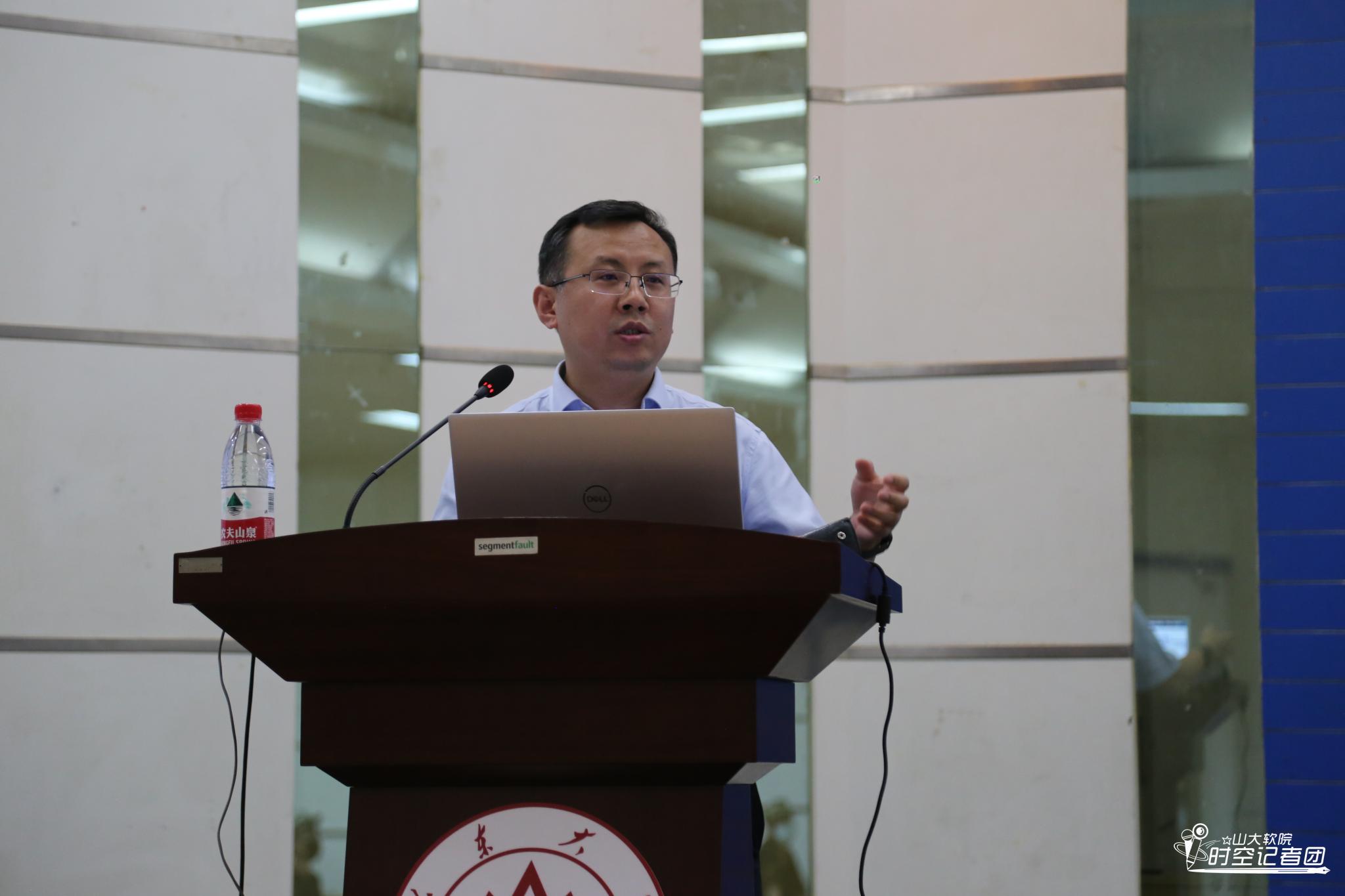为了让新生更加了解自己的专业,他详细介绍了软件工程通史,从第一台完整的冯·诺依曼计算机到如今层出不穷的超级计算机,软件工程发展极为迅速。他以华为云端工作管理系统为例,突出强调了软件强大的力量和其在现代社会经济生活中占据的重要地位。