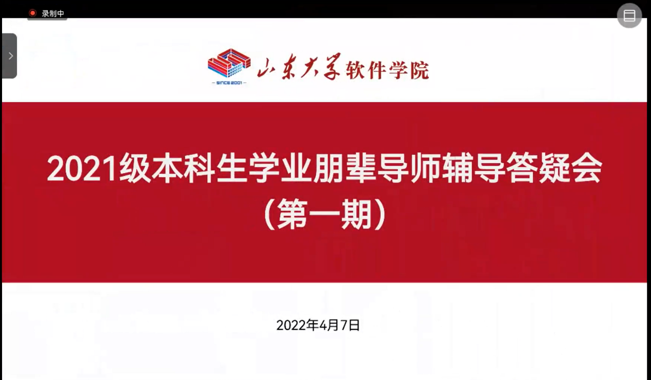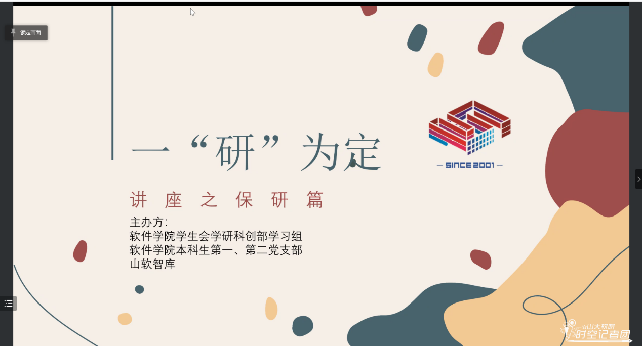 由软件学院学生会学研科创部学习组、软件学院本科生第一、第二党支部以及山软智库联合主办的“一‘研’为定”之保研讲座于线上召开。