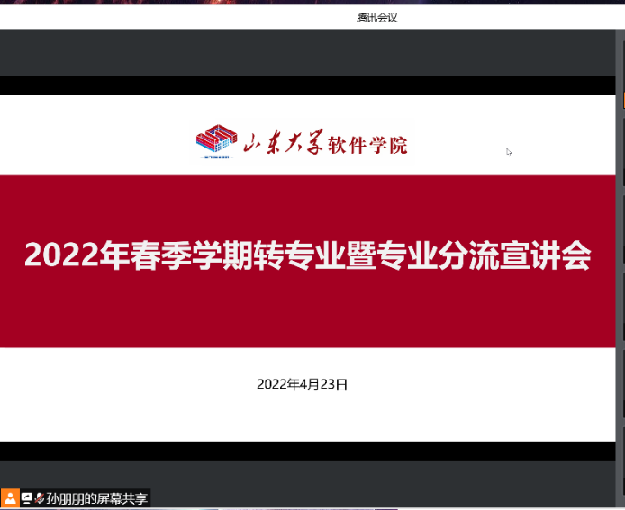 4月23日,软件学院召开2022春季学期转专业暨专业分流宣讲会,院长崔立真,副院长周云峰、刘士军,各专业系主任及特色班负责老师参加活动。2021级辅导员孙朋朋主持活动。