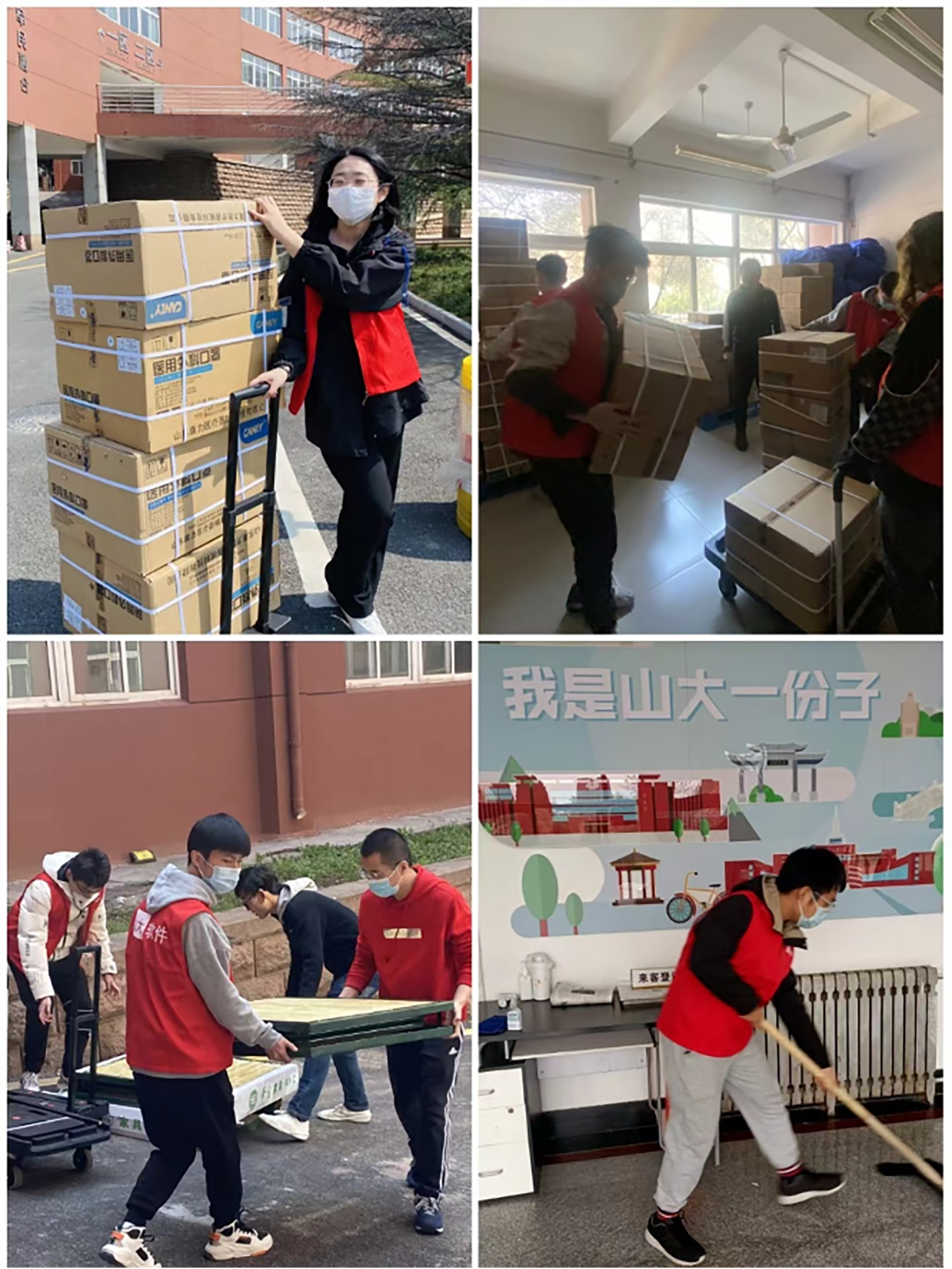 “x项任务”助力志愿担当保护伞。为解决校园工作人员人数不足问题,临时党支部联合协助学院常态化、规范化组织开展楼层清扫、快递点消杀、图书馆协助、超市物资整理、校园秩序维护等志愿活动,定时定岗,落实到人;为更好满足校园封闭管理期间师生需求,党支部积极发动志愿者进行师生需求调研、协助防疫物资分发等志愿服务活动,解决师生急难愁盼问题,给师生的日常生活提供最有力的支持和保障。不断完善和织密党支部志愿力量管理,挺身而出为同学们筑起一道守护安全健康的城墙,同心协力筑成“公寓防线“,共克时艰。