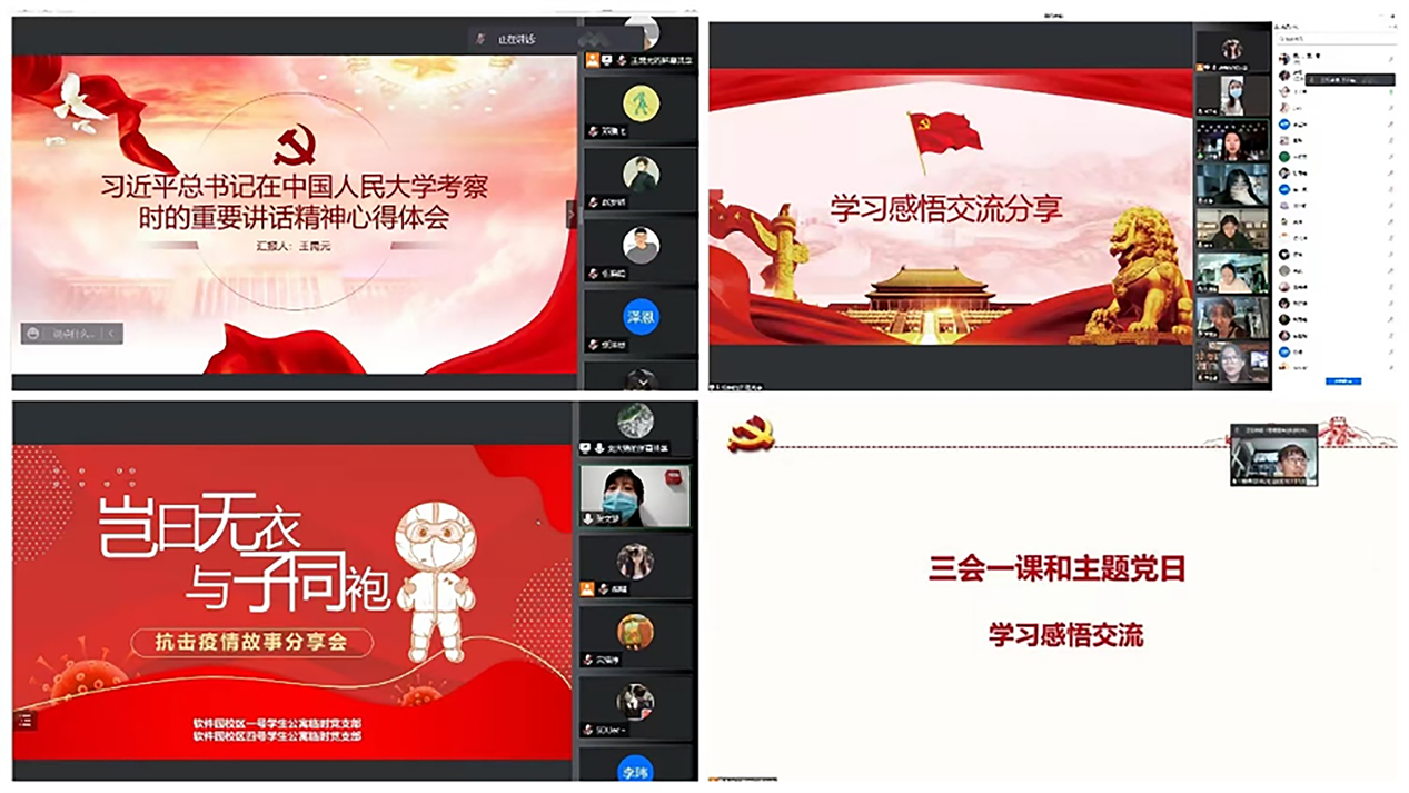 “两个大会”划好支部建设责任田。举行支部大会与线上见面会,制定周密方案以组织党员先锋力量开展防控,将工作计划做严、做细、做实,同时依据党员自身优势划分党小组与构建党小组责任机制,开展密切讨论,压实压紧责任;师生需求调研也于支部大会同步开展,形成网格式急难愁盼问题汇总以有序落实落地跟进解决;线上见面的方式也促进了党员间的交流,增进了彼此的了解,有效加强了支部向心力。