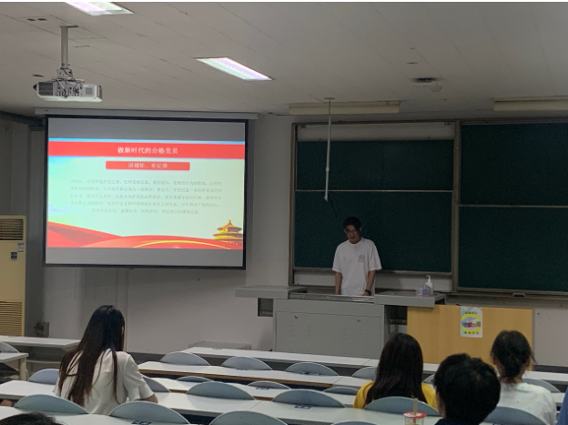 随后,由曹铭哲同志与薛大龙同志主讲的主题党课聚焦党的二十大的基本情况、党对青年勇担使命的要求、党支部战斗堡垒和先锋模范作用等方面展开。曹铭哲同志着重介绍党的二十大的召开意义与选树青年榜样与典型,鼓励同志们从传承中积蓄力量、在前行中明确方向、在碰撞中获得成长,引导党员同志坚守共产党人信念宗旨,在青春赛道上跑出这代人的最好成绩。薛大龙同志则以毕业生党员的身份分享了个人的发展规划与思想认识进步,同时也表示会继续坚持学习科学文化知识与加强思想认识有机统一,坚持把学习书本知识和投身社会实践相结合,配合毕业相关工作,切实了解毕业生存在的困难,发挥党员带头作用,站好最后一班岗,以模范行动带动全体毕业生文明、安全、顺利离校。