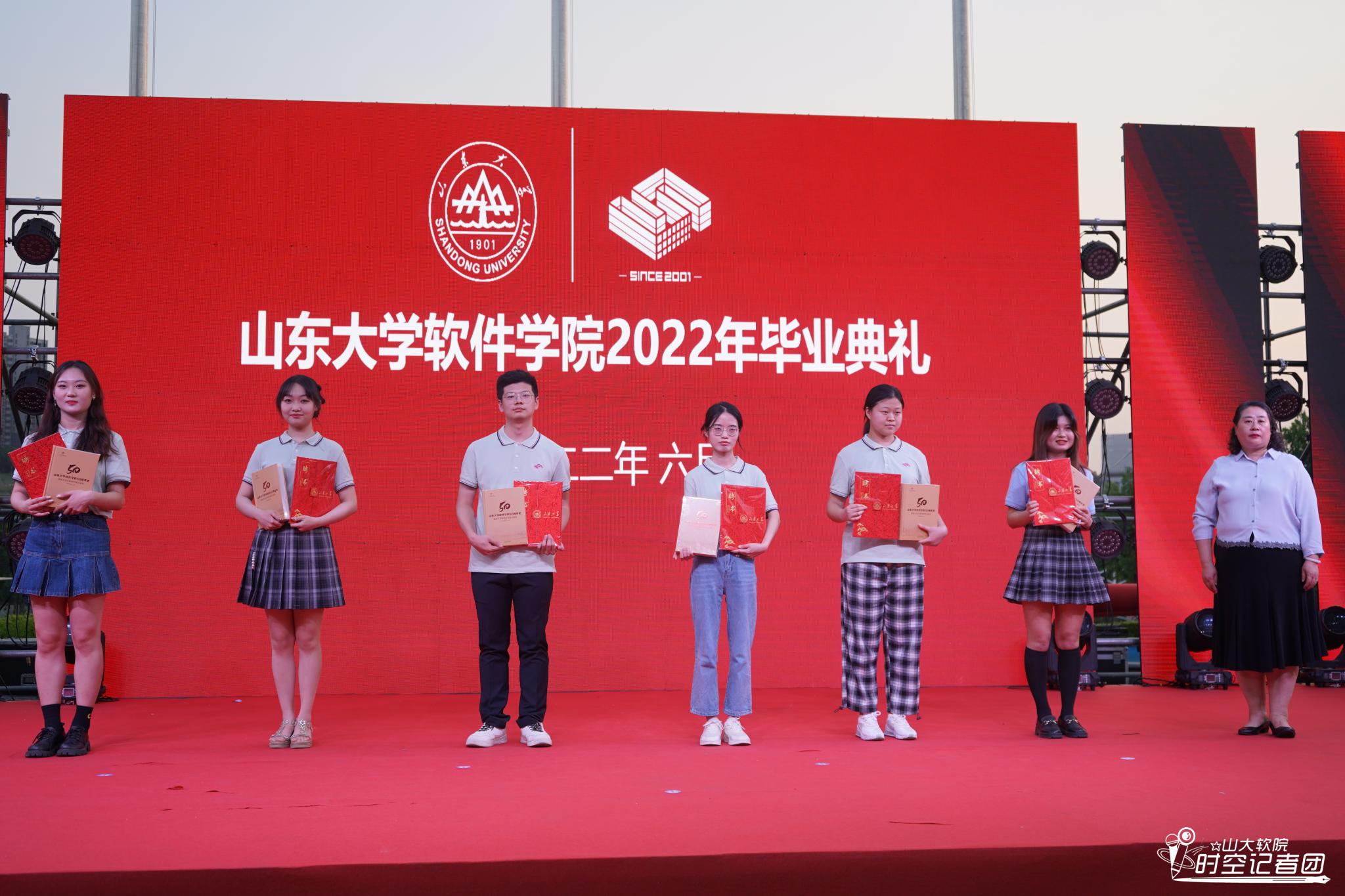 19点整,毕业典礼在嘹亮的国歌声中拉开序幕。刘士军宣读了软件学院2022届优秀学生及先进集体名单并进行颁奖仪式。获奖学生及集体代表依次上台接受表彰并合影留念。