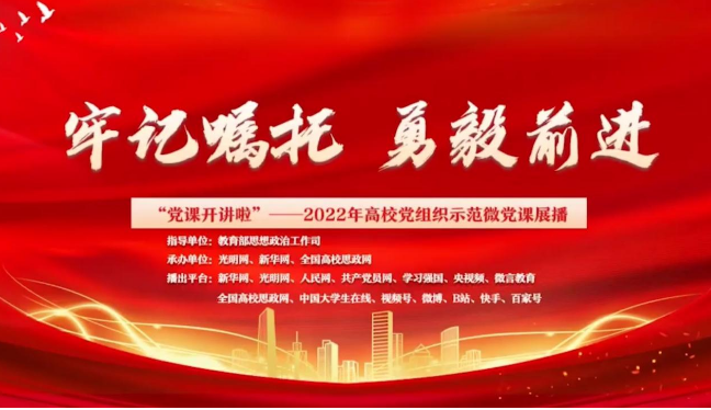 7月29日,软件学院本科生第一、第二党支部组织学生党员集体观看以“牢记嘱托,勇毅前行”为主题的第8期2022年高校党组织示范微党课。