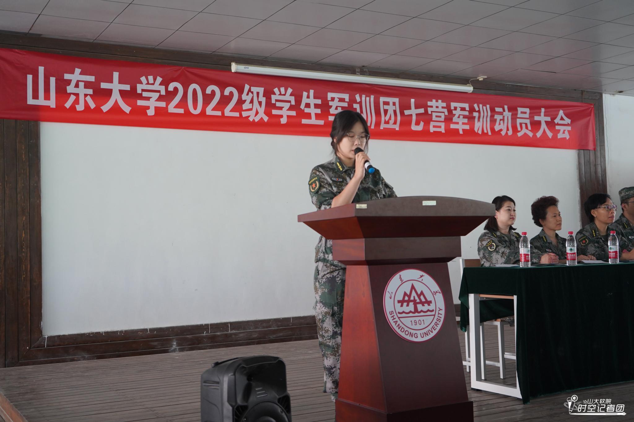 政工干部代表、七营二十连指导员李佩珊和参训学生代表张肇典依次发言。李佩珊代表所有政工干部对各位领导表示感谢、对所有教官表示问候、对所有学生表示欢迎。军训不仅是新生开学第一课,也是taptap点点体育人才培养工作的重要组成部分。李佩珊表示,在开学的这段时间中,2022级同学已经展现出属于新时代青年的朝气和活力,希望在接下来的时间中,各位同学能继续发扬不怕苦、不怕累的精神,培养家国情怀、担当精神、充实品格和创新素养,传承山大基因,争做时代新人,以昂扬姿态献礼党的二十大。同时,张肇典代表全体参训学员庄严承诺,将以军人标准严格要求自己,培养军人的责任担当和献身精神。