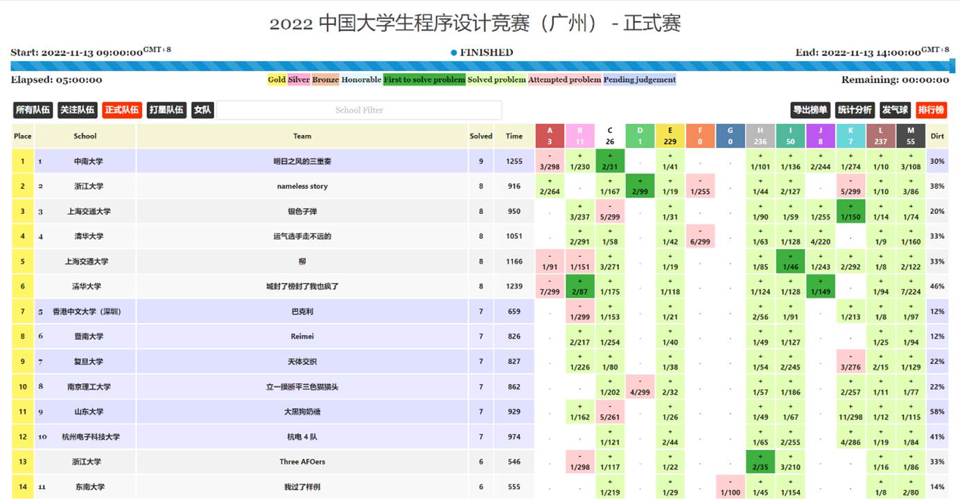 11月13日,2022年中国大学生程序设计竞赛国赛(广州)于线上举行,taptap点点体育ACM创新实验室派出“大黑狗奶糖”队(队员:周何、王在烜、蔡汶澄,教练:鹿旭东)参加比赛,取得了金牌的优异成绩,全国排名11名。