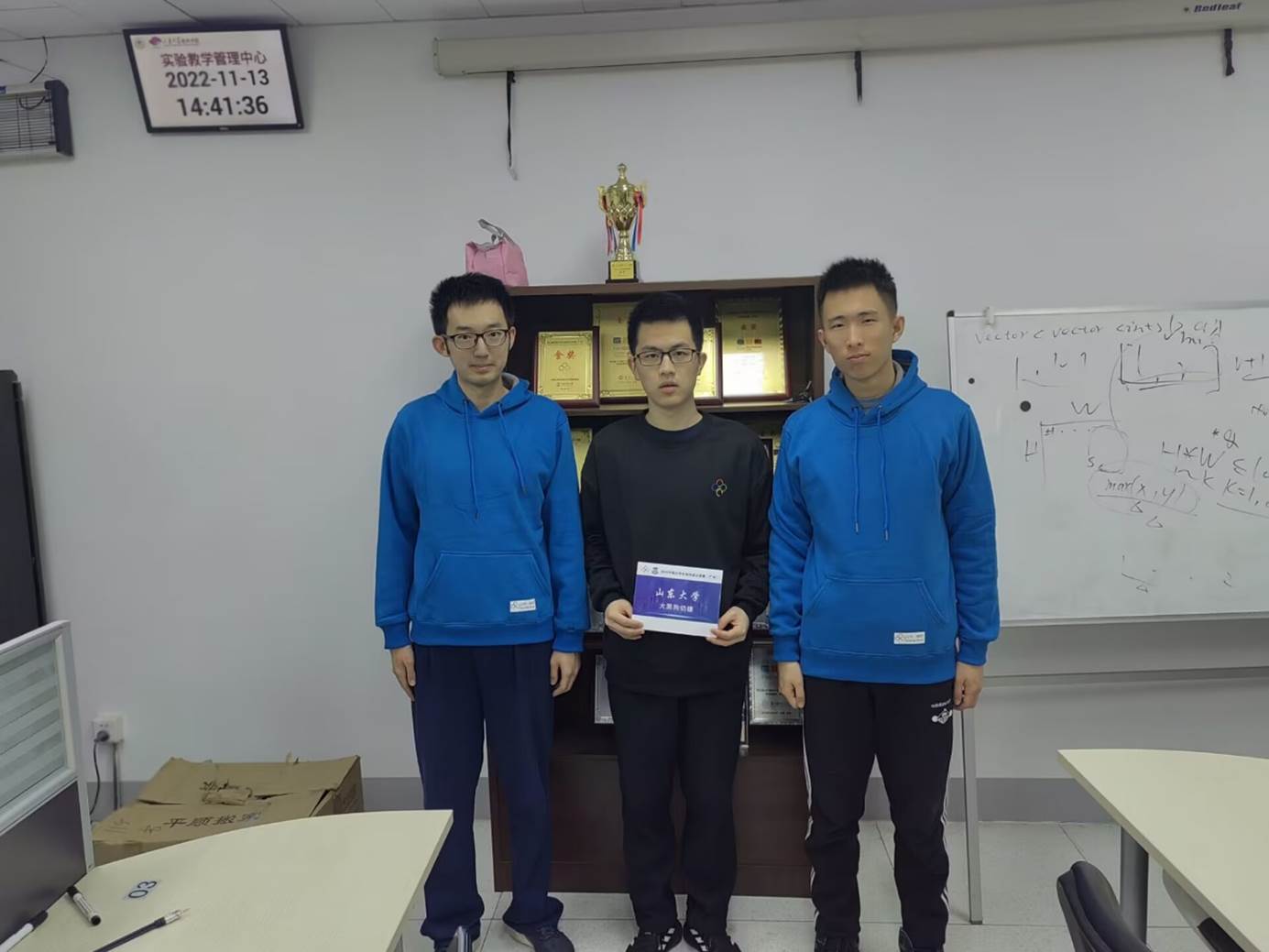 中国大学生程序设计竞赛国赛对学校参赛名额有严格限定,软件学院今年有共4支队伍获得参赛名额,已全部完成比赛,共取得一金三银的好成绩,在全国高校中名列前茅。其中,“黄金滋嘣狗”队(队员:许蕴朴,韩雨辰,郭子健)在桂林赛站;“我猜你不猜我猜不猜你猜不猜”队(队员:陈子载、侯程文、苏程)和“说好不秃”(队员:吴羲勇、张丁祎、门建彤)队在威海赛站均取得银牌。