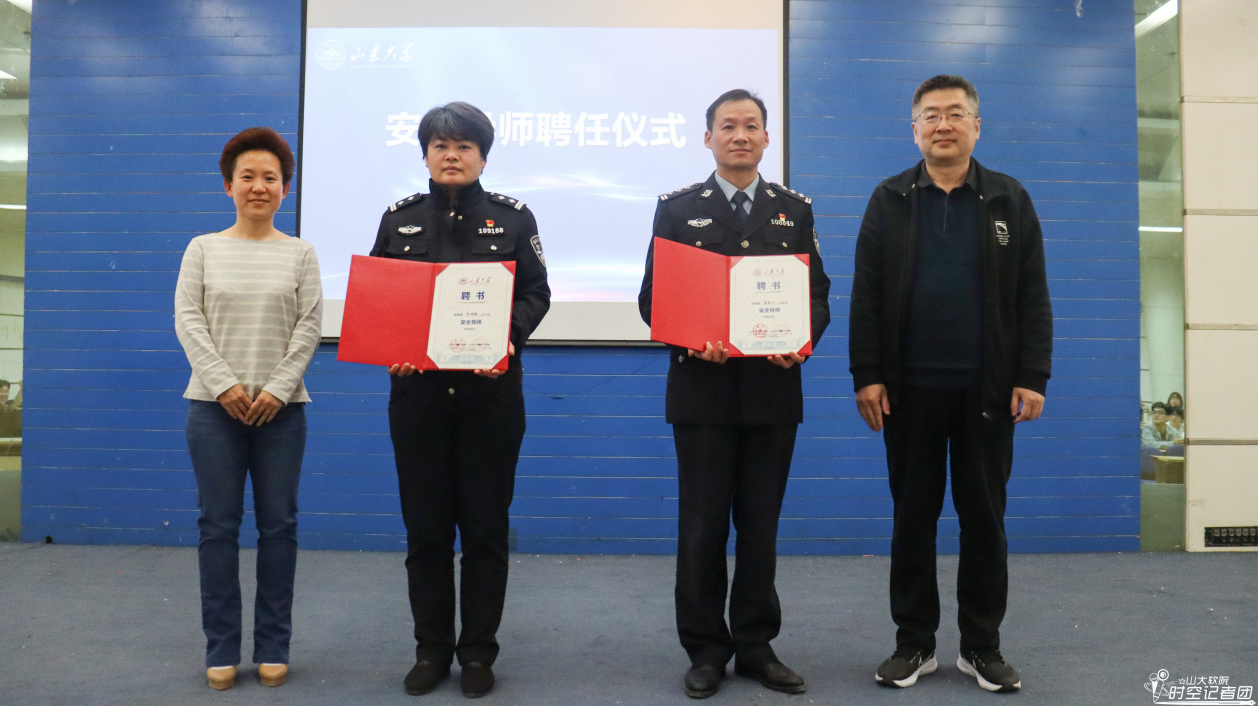 随后进行安全导师聘任仪式,由吕刚、崔剑为两位警官颁发聘书。