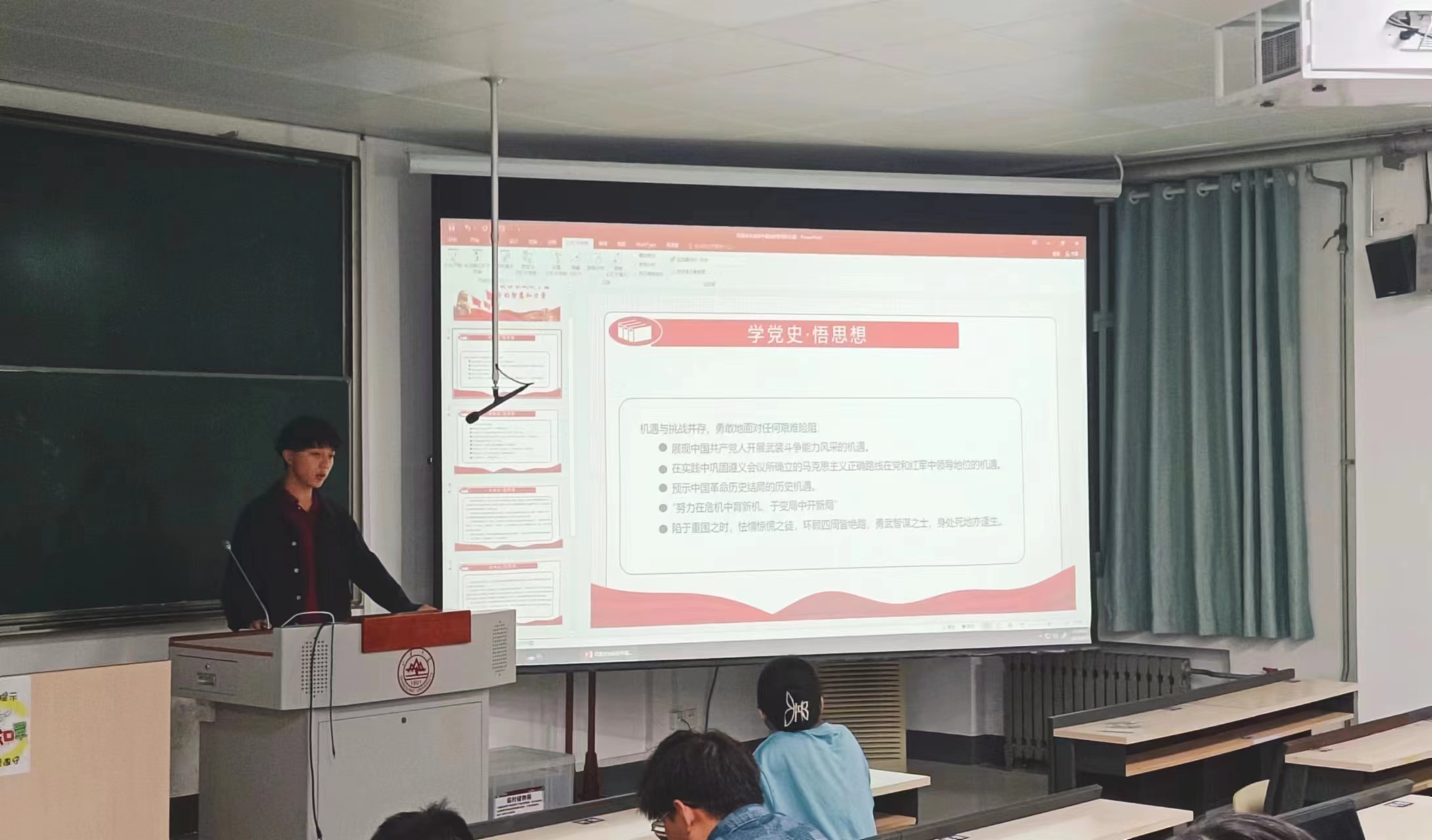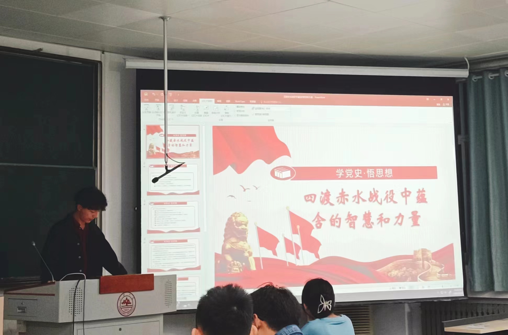 首先,王绪林同志带领大家观看了天津大学程斯宇老师的四渡赤水战役的板书讲解视频。通过程老师生动的讲解,大家回顾历史,了解了四渡赤水战役的背景以及整个过程。四渡赤水作为红军长征途中彻底摆脱被动的一次经典战役,充分反映了毛泽东卓越军事思想和高超指挥艺术,被毛泽东誉为军事指挥生涯的“得意之笔”。