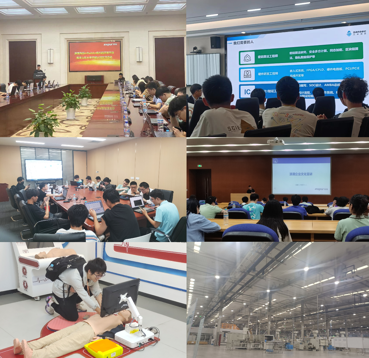 在高峰技术论坛开展的同时,此次开放周同时组织学生分组进入浪潮集团有限公司、济南金威刻科技发展有限公司、中孚信息股份有限公司、山东数字人科技股份有限公司、普联软件股份有限公司、金现代信息产业股份有限公司、费斯托(中国)有限公司、超越科技股份有限公司、神思电子技术股份有限公司、山大地纬软件股份有限公司、积成电子股份有限公司、济南欧玛信息科技有限公司、中国重型汽车集团有限公司、国家超级计算济南中心、国网智能科技股份有限公司、山东奥太电气有限公司、济南概伦电子科技有限公司、山东山大华天软件有限公司、山东新松工业软件研究院股份有限公司、三未信安科技股份有限公司等二十家企业进行实地深度实践交流,涉及云计算、大数据、激光应用、硬件制造、软件开发、图像处理、信息安全、工业软件等多个领域,以主题讲座、展厅学习、实地参观、实践体验等多种形式全面了解企业文化、前沿领域和行业情况。