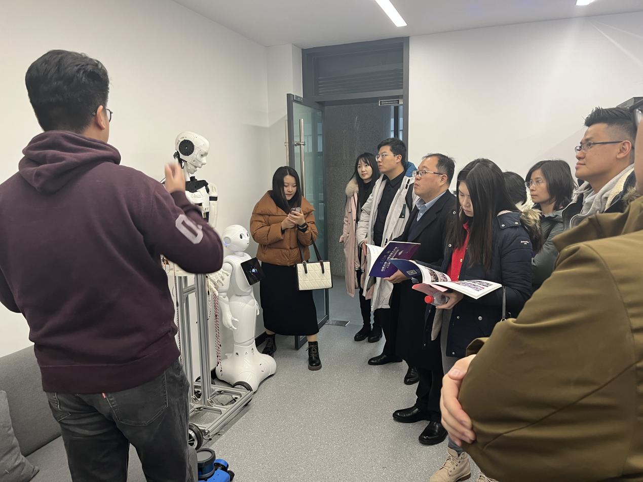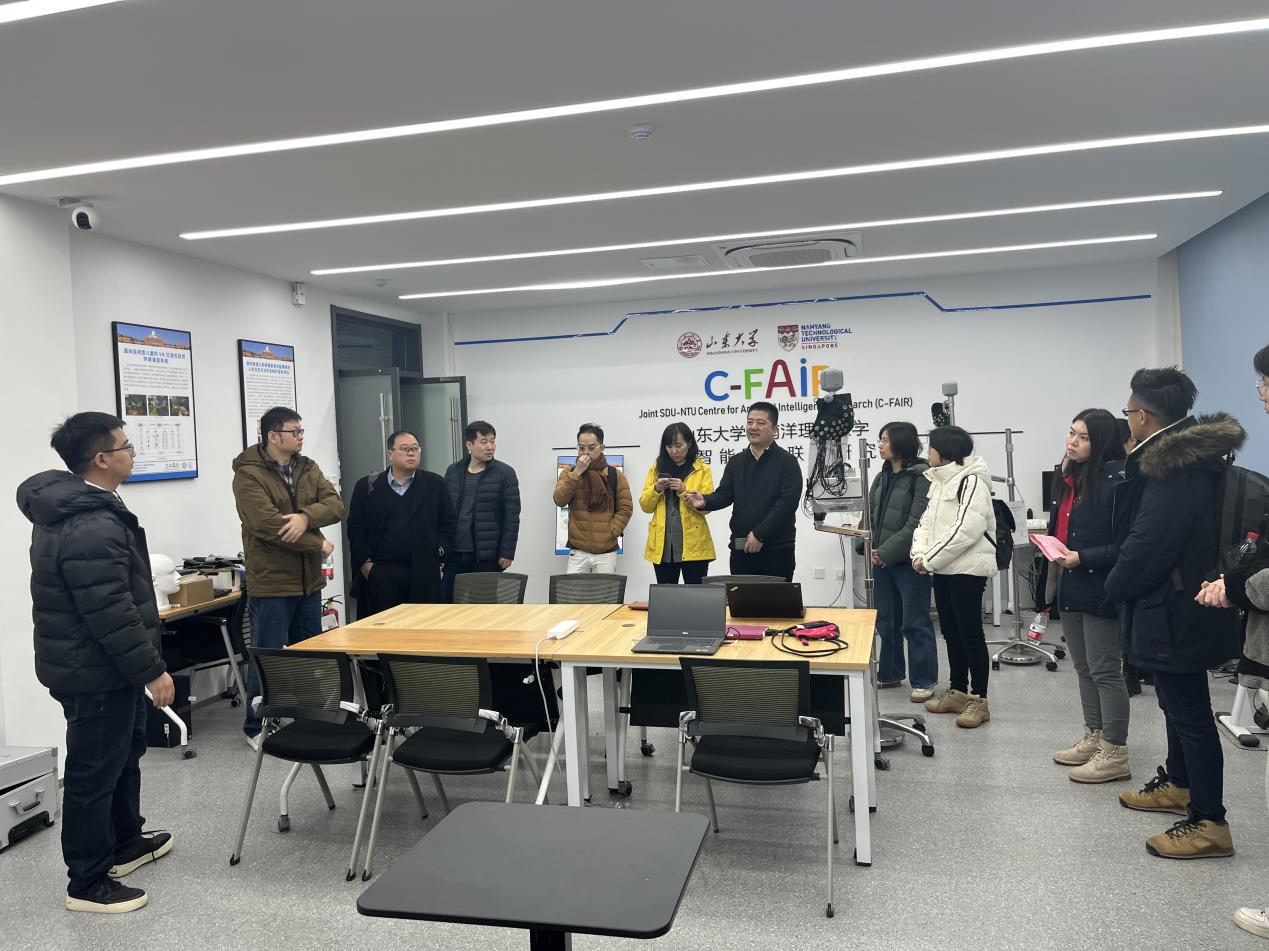 会后,参会代表参观了教育部数字媒体技术工程研究中心,体验了沉浸式教育学习系统CAVE的多项应用,包括太极动作教学、心灵瑜伽体验、交互式儿童认知游戏等,了解了中心在数字媒体技术领域的前沿技术成果和项目落地应用方向。接下来,参会代表参观了taptap点点体育-南洋理工大学人工智能国际联合研究院,卜令国教授针对脑功能脑评估与智能康复技术与代表团进行了深入讲解交流,赵一博文博士介绍了C-FAIR研究成果仿人机器人、四足机器人,苏岳翰博士与来访人员就区块链研究成果展开了深入交流。
