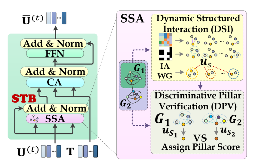 现有的视觉表征学习通常采用基于自注意力机制的视觉上下文增强的方法,相关研究指出自注意力机制存在秩塌陷和特征退化的问题,这使得其应用于下游任务的表征无法充分发挥。为了缓解上述问题,该研究提出一种新颖的类社交自注意力机制来优化多模态推理任务中的表征学习,研究将视觉上下文交互的过程与社交群体中的人与人交流的过程进行类比,并从社交理论的两个重要概念——结构洞理论和度信息理论展开,分别对应设计了两种轻量级即插即用的单元:1)动态结构化交互单元,此单元模拟了结构洞的行为,结构洞作为社交群体中链接不同子群体的信息中介,可以接受更多信息来源,它的存在约束了一部分信息只在子群体的内部进行交互,从而使得信息交互更具备结构化,从而避免了特征的全局同质化,优化了表征的学习;2)判别性支柱校验,此单元利用度信息理论,建模了群体中不同人的重要差异,根据了信息的传递性,动态地学习了特征的判别性。该研究利用五个真实数据集在两个下游任务上进行了实验验证,相比于基线,都展现了显著性的提升,充分的可视化分析也说明了网络的社交行为和秩、表征学习的优势。