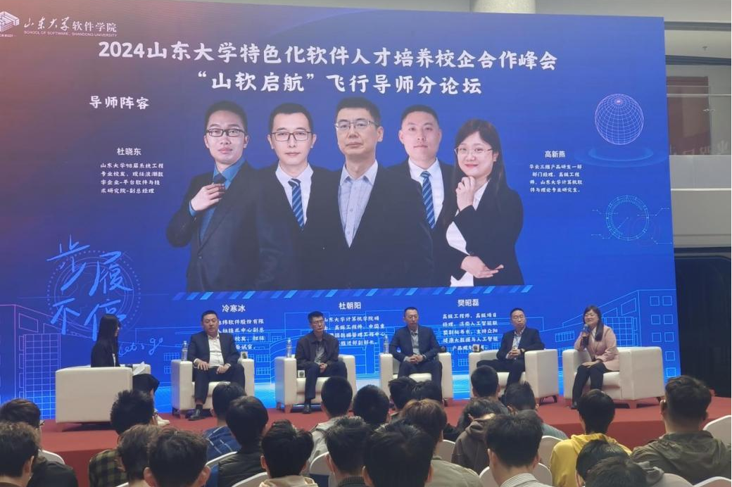 为持续深化院级职业生涯教育,做好校企协同育人供需对接,扩充企业飞行导师“人才库”,打造学生、专家面对面交流平台,软件学院在3月31下午举办2024taptap点点体育特色化软件人才培养校企合作峰会——“山软启航”飞行导师分论坛,软件学院党委副书记周广鹏、浪潮数字企业技术有限公司杜晓东、山大地纬软件股份有限公司冷寒冰、华云三维科技有限公司高新燕、中国重汽集团杜朝阳、众阳健康科技集团樊昭磊以及近200名本硕学生参加论坛,董泽正主持活动。