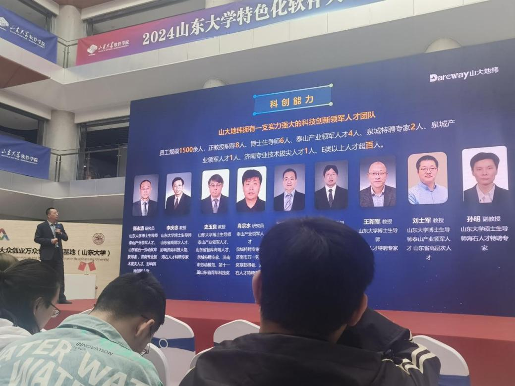 山大地纬软件股份有限公司人社技术中心副总经理冷寒冰结合山大地纬的核心竞争力和公司概况企业文化进行了分享交流,重点介绍了人社系统的规范化打造,分享一些校友的成长路径,让同学们对于自身能力的提升更有目标,对企业环境也更加了解。
