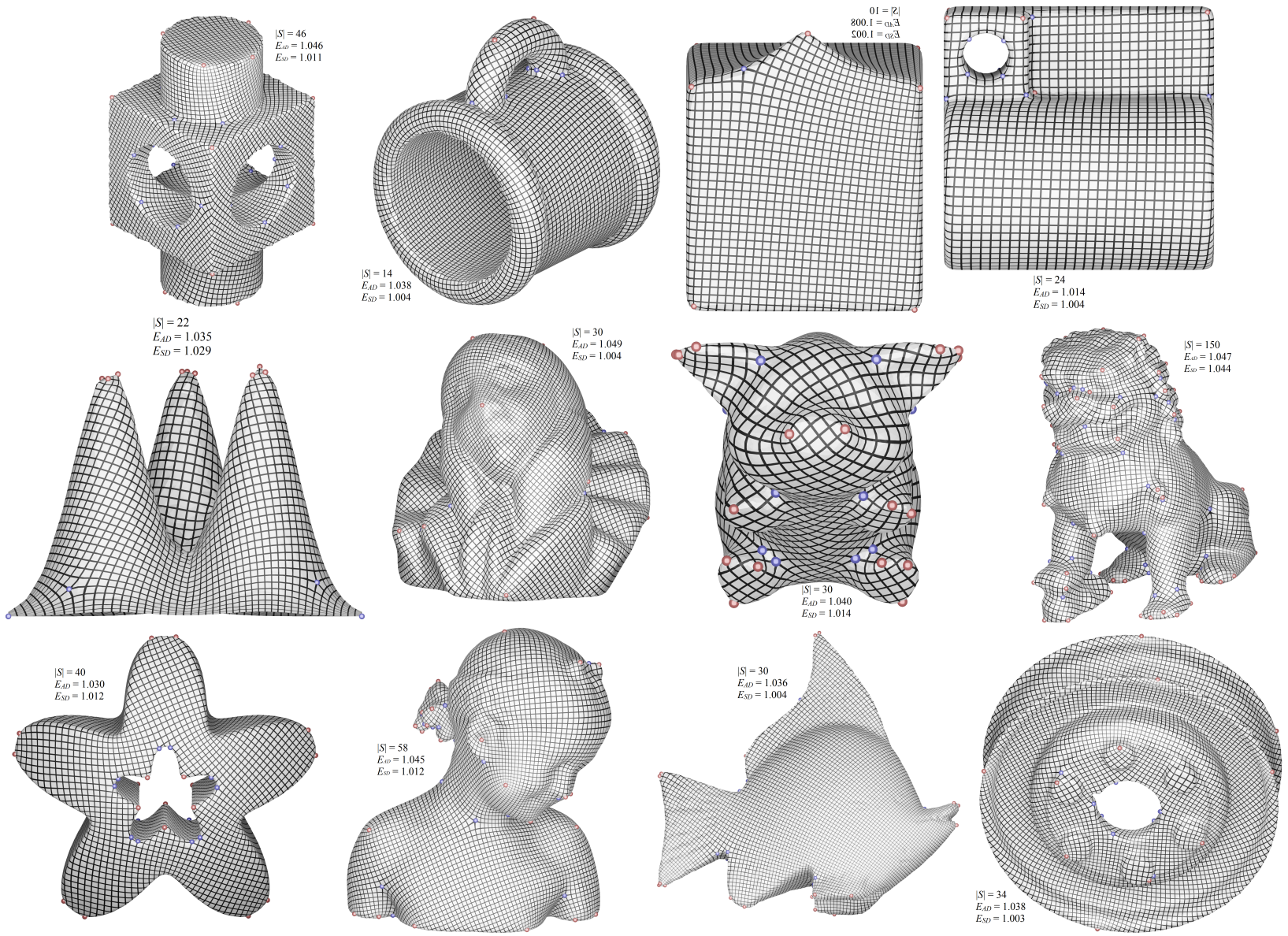 该工作主要研究的是曲面的共形参数化问题,是曲面表达和重建中的核心理论问题之一。在曲面上建立曲线坐标网是研究曲面的重要方法,也是在曲面上离散求解微分方程,绘制纹理贴图不可缺少的重要技术。这篇论文突破了曲面参数化领域多年来一直未能解决的奇异点分布问题和多连通曲面的正交方向场的可积性两个理论难题,并设计了相关的算法,实现了对任意拓扑曲面共形参数的自动构造。论文对奇异点分布问题解决的策略是引入了一个静电场模型:把曲面的高斯曲率视为连续分布的电荷,奇异点视为点电荷,通过构造麦克斯韦张量计算电场力,在电场力的作用下调整奇异点的分布,把电势能降到最低,实现奇异点的优化,这个优化显著减小了面积扭曲,大大提升了参数化质量。对多连通曲面上方向场的可积性问题,论文引入了基于通过计算共形因子与方向场的梯度场的差构造的环形场,利用环形场的信息调整奇异点,逐步消除环形场,从而确保正交方向场的可积性。论文成果不仅完善了共形参数化理论,在有限元软件前处理模块的开发,计算机图形学中的纹理贴图,几何重构等关键问题中都有着重要应用价值。该论文在评审中获得了全部审稿人的满分评价,并被会议推荐到计算机图形学CCF A类期刊《IEEE Transactions on Visualization and Computer Graphics》发表。
