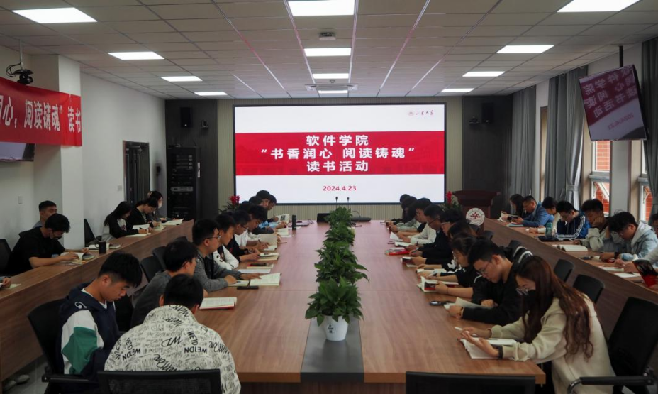 为深入贯彻落实习近平总书记关于“深入推进全民阅读,建设‘书香中国’”的指示精神,响应学校关于加强学生党支部党建工作示范引领作用的号召,在4月23日“世界读书日”来临之际,软件学院举办“书香润心 阅读铸魂”读书活动,学院党委书记姜炳刚、各年级辅导员和学生党员代表40余人参加活动。