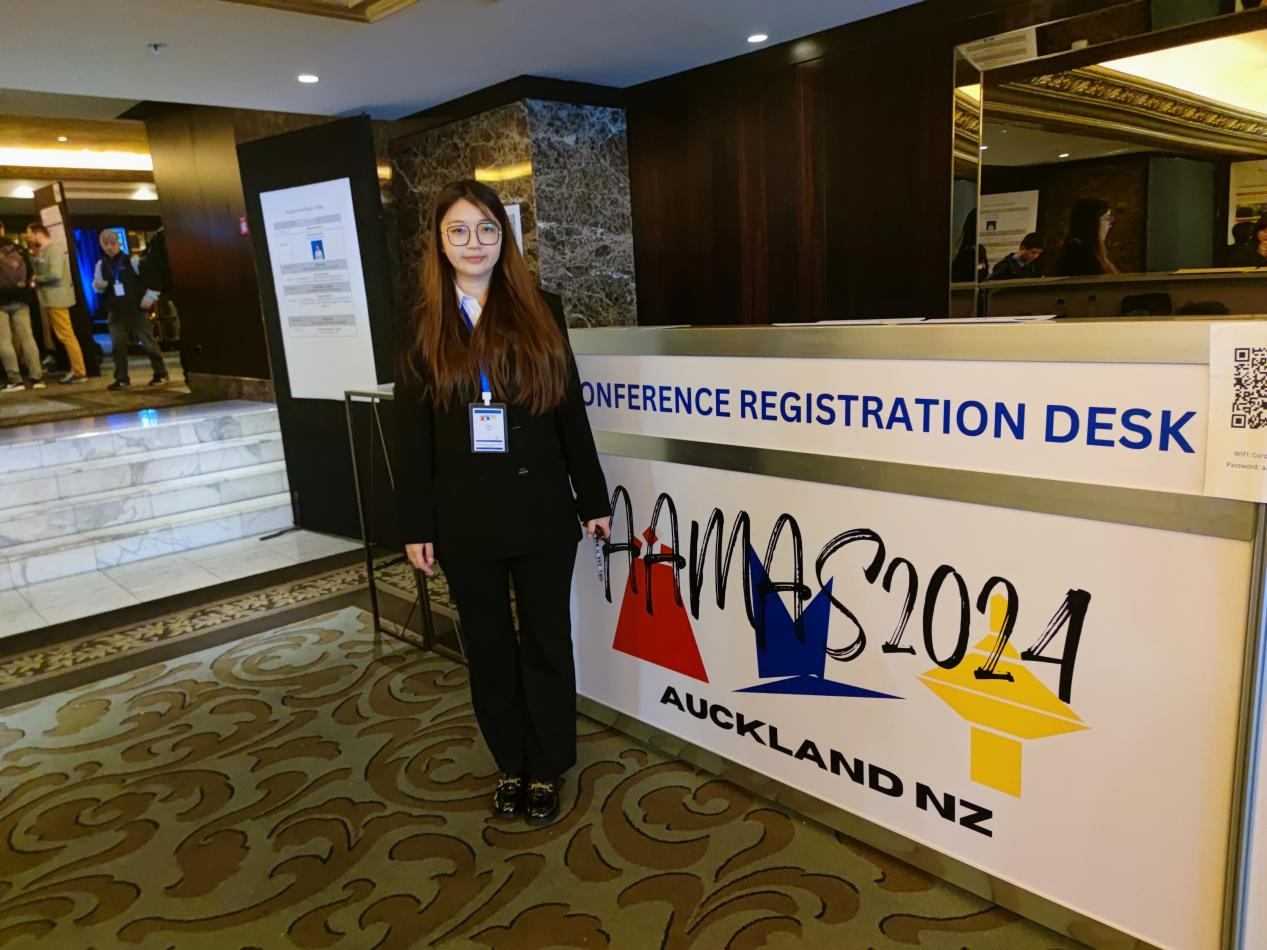 5月6日至10日,第23届智能体及多智能体系统国际会议(The 23rd International Conference on Autonomous Agents and Multi-Agent Systems,AAMAS2024)在新西兰奥克兰举办。taptap点点体育人工智能新工科班本科生汤欣宇参加会议,并汇报展示论文成果。论文“Towards Efficient Auction Design with ROI Constraints”被AAMAS2024接收为研究性长文,第一作者为软件学院本科生汤欣宇,软件学院刘磊教授、吕洪涛博士为指导老师,合作者包括软件学院崔立真教授、上海交通大学吴帆教授以及软件学院本科生高英杰。