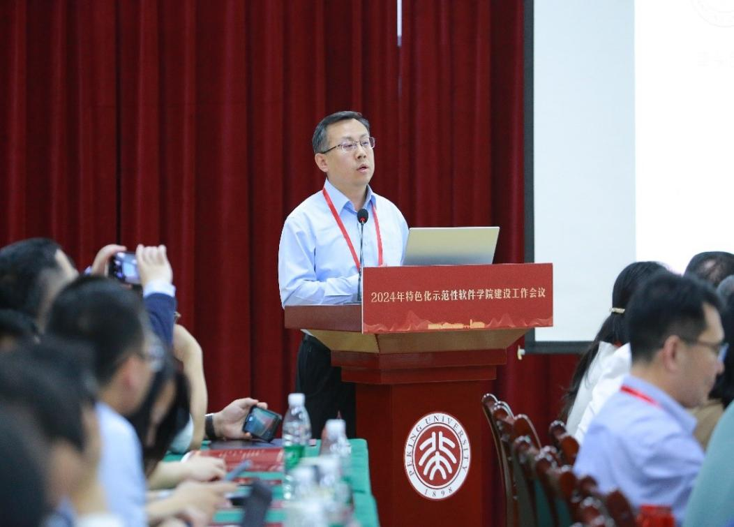 近日,特色化示范性软件学院建设工作会议在北京大学大兴校区召开。教育部高等教育司理工处一级调研员侯永峰,示范性软件学院联盟理事长卢苇,北京大兴经开区党工委书记、管委会主任常学智,北京大学、清华大学等全国首批33所特色化示范性软件学院的主要负责人,以及特邀专家代表等80余人出席,会议由北京大学软件与微电子学院院长吴中海主持。软件学院参加会议并做主旨汇报。