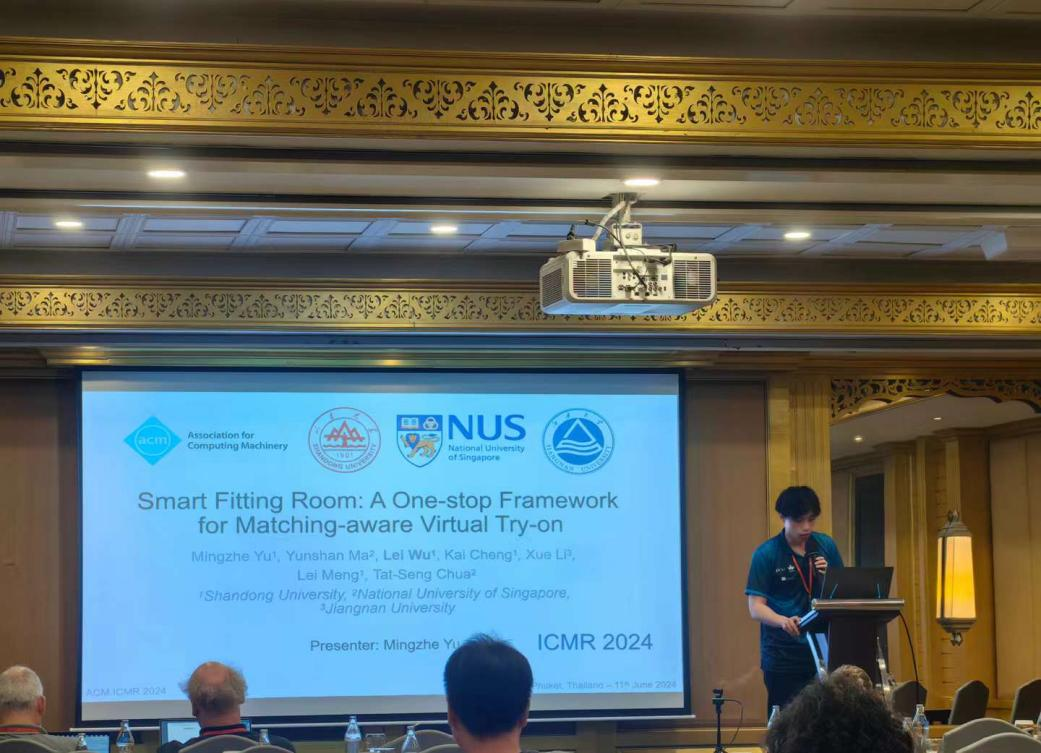 近日,第14届国际多媒体检索会议(ICMR)在泰国普吉岛举行。软件学院人机交互与虚拟现实中心硕士研究生于铭哲参加会议,并汇报展示论文成果。论文“Smart Fitting Room: A One-stop Framework for Matching-aware Virtual Try-on”第一作者为硕士生于铭哲,武蕾副教授为指导教师,合作者包括软件学院孟雷教授,新加坡国立大学马云山博士,Tat-Seng Chua教授,江南大学李雪博士。