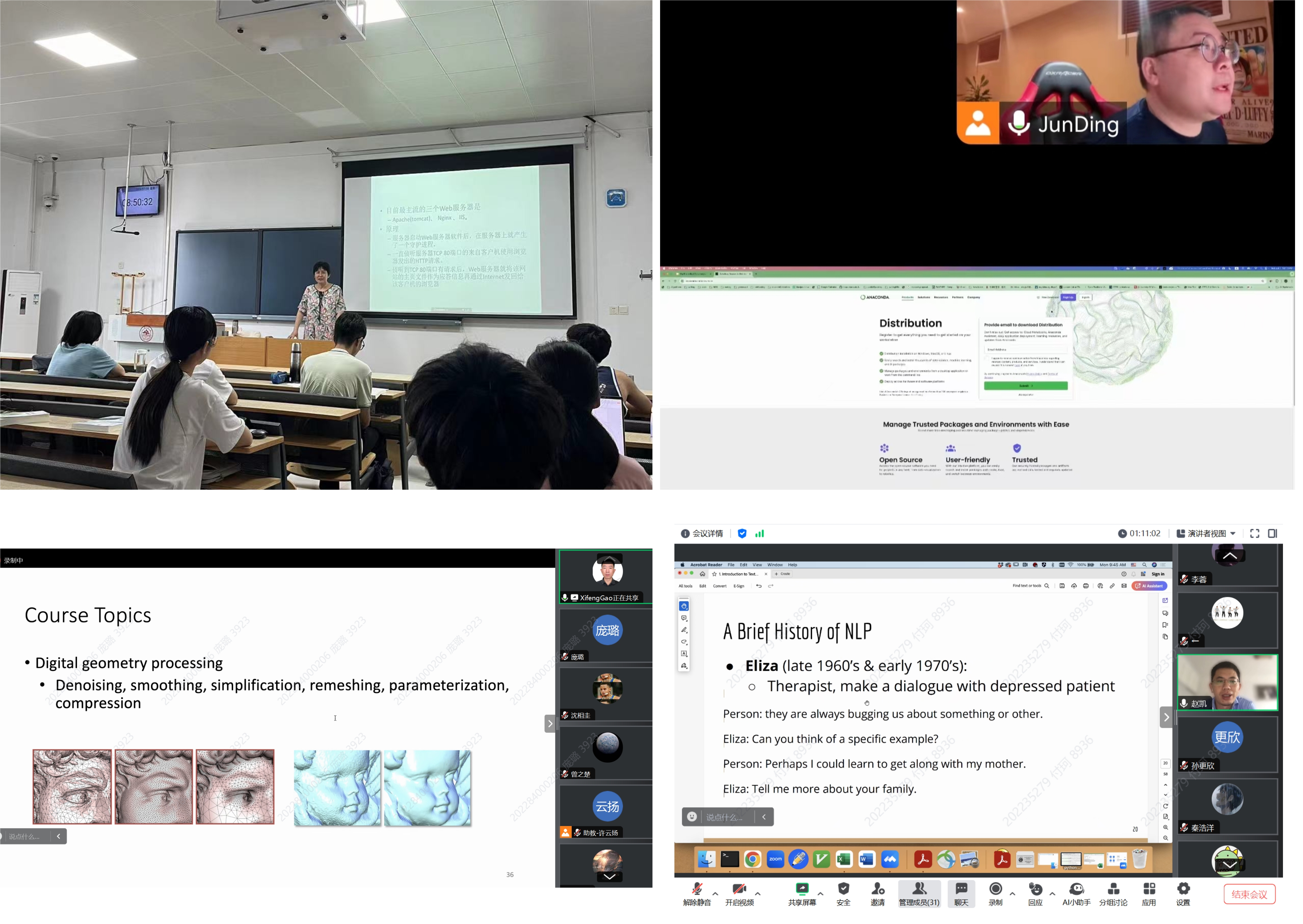 今年,暑期学校仍设海外师资项目与暑期精品项目两大板块,共计开设课程二十余门。海外师资课程邀请了来自南洋理工大学、英国爱丁堡大学、澳大利亚悉尼大学、日本筑波大学、挪威科技大学等国际名校的十余位教授分别讲授《高级算法及其在图和计算几何中的应用》《ChatGPT与人工智能数据分析》《生物医学大数据》《人工智能在心理学中应用》等课程,内容涉及数字几何处理、机器学习、人工智能、数据分析等各个方面,满足了学生多样化学习的需求,为提高学生解决理论和实践问题的能力奠定坚实基础,受到了同学们的广泛欢迎和好评。