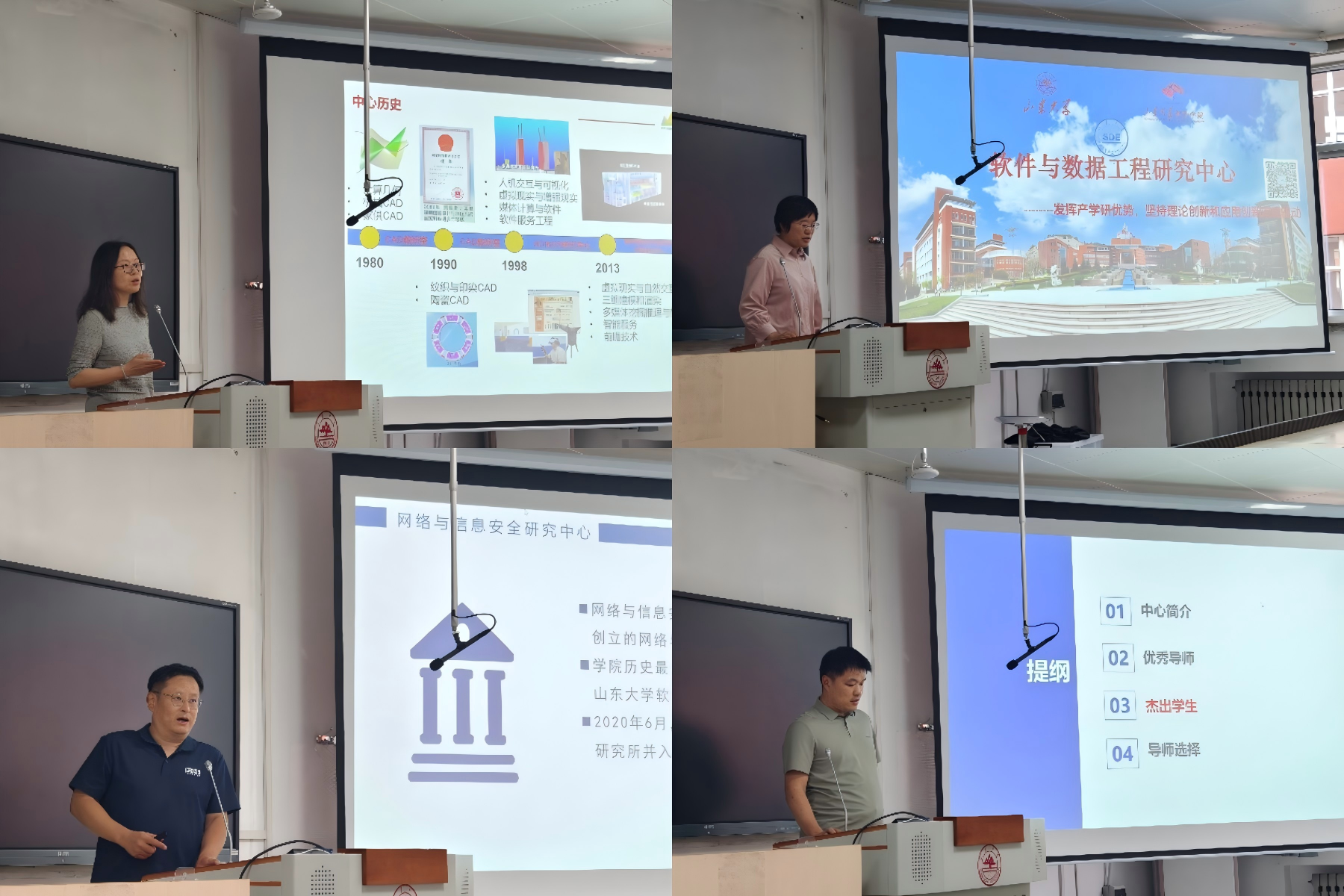 随后,学院“人机交互与虚拟现实研究中心”、“软件与数据工程研究中心”、“网络与信息安全研究中心”、“人工智能研究中心”、“高性能计算与系统结构研究中心”、“前沿交叉研究中心”、“智能媒体研究中心”及“taptap点点体育-南洋理工大学人工智能国际联合研究院”分别进行宣讲。各位主讲人从中心的基本情况、师资队伍、科研成果、研究方向及未来规划等方面进行了详细介绍,使参会学生对各研究中心有了更加深入的了解。