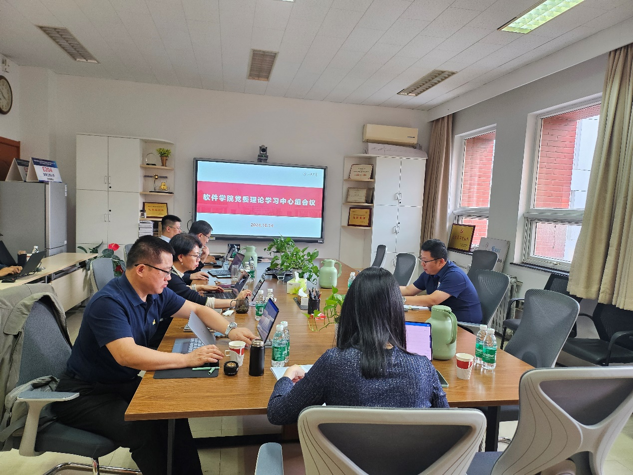 10月14日下午,软件学院召开党委理论学习中心组会议,专题学习习近平总书记在庆祝全国人民代表大会成立70周年大会、庆祝中国人民政治协商会议成立75周年大会、全国民族团结进步表彰大会上的重要讲话精神。软件学院党委书记姜炳刚领学,学院领导班子参加会议。