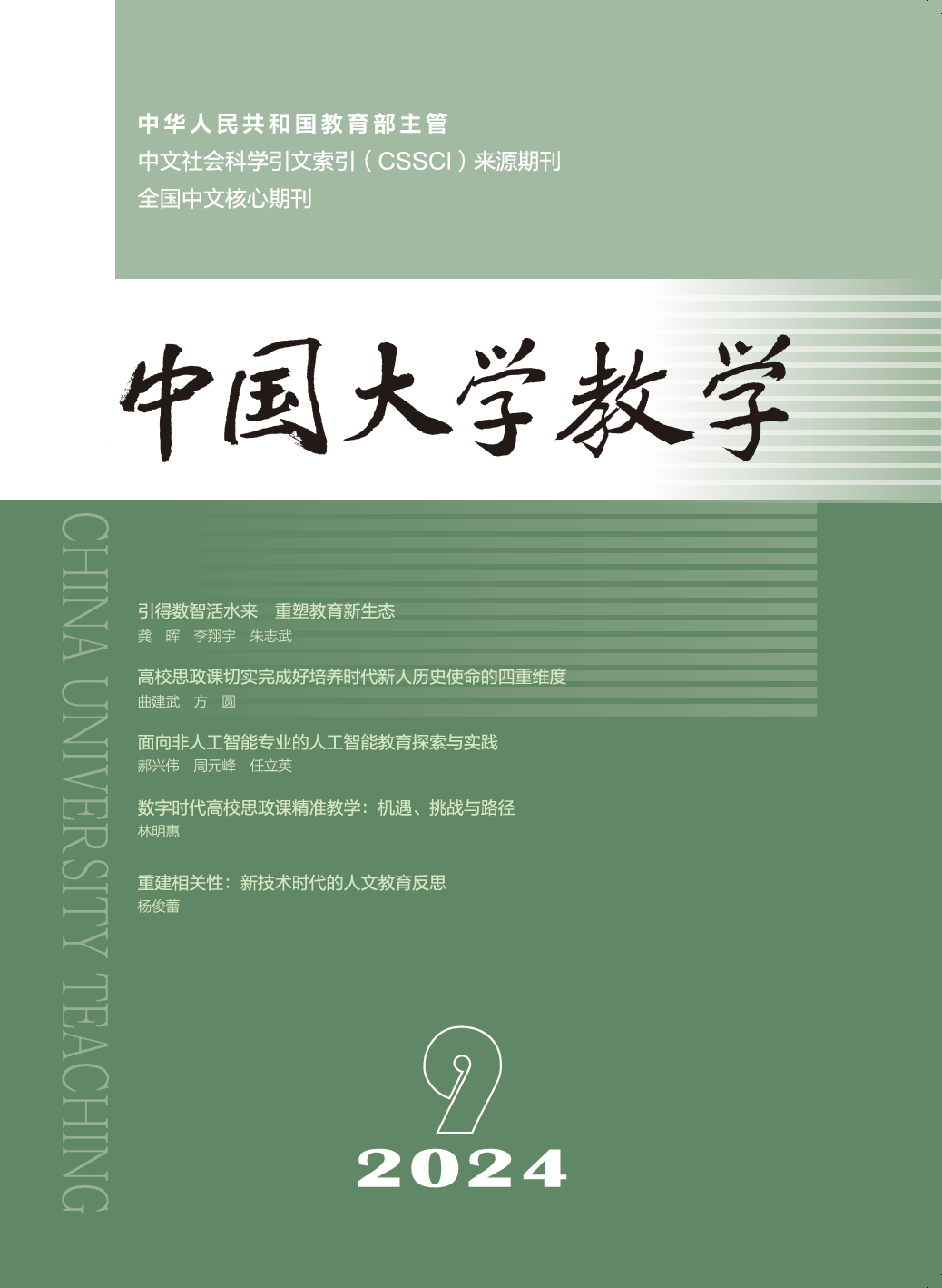 近日,《中国大学教学》2024年第9期刊发了软件学院教授郝兴伟、周元峰,本科生院任立英的封面文章“面向非人工智能专业的人工智能教育探索与实践”。