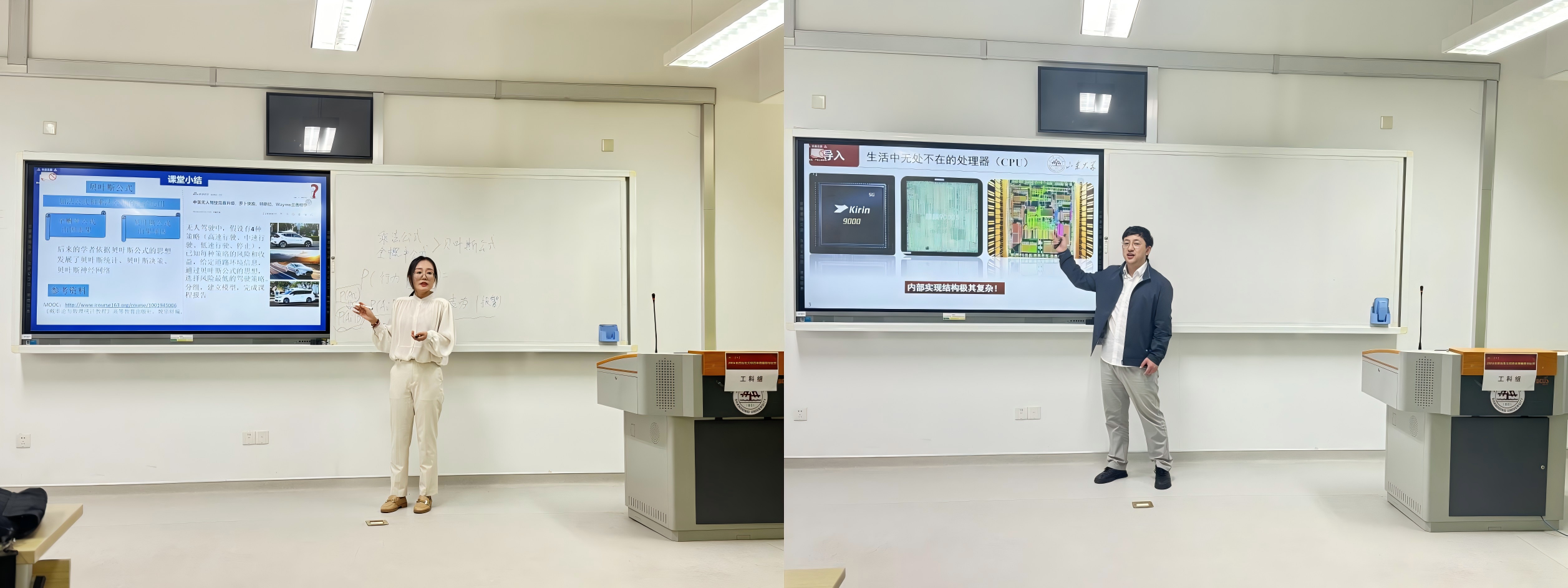决赛中,张欣欣老师讲授了《概率论与数理统计》中的贝叶斯公式部分,运用辅助驾驶系统推导出了贝叶斯公式,并结合时事热点讲解贝叶斯公式在自动驾驶和语言模型中的应用,将概率论中的知识与软件工程、人工智能专业课程有效结合起来,突出了课程思政;徐明珠老师讲授《计算机组织与结构课程》CPU的基本组成与功能小节,通过华为CPU备胎计划导入课程思政,将CPU与生活中的厨房组成和功能进行类比,帮助学生更加直观理解CPU的基本组成与功能。两位青年教师的教学设计独具匠心,教学过程精彩纷呈,充分展示了软件学院教师的专业素养和教学风采。