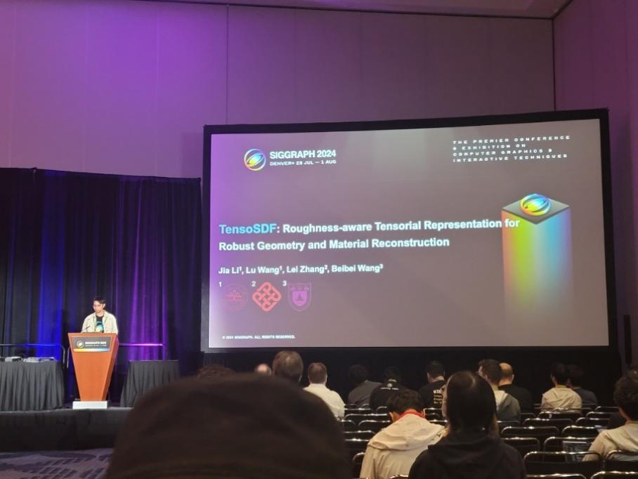 李佳的第二个课题是关于借助神经辐射场进行三维重建的任务,与上一个课题相比,这是一个相对较新且火热的研究方向,充满机遇的同时也考验每一位研究者的速度,需要自己补足大量相关知识并时刻关注前沿进展。研究初期,面对海量的论文他并未一开始就确定了要解决的任务,而是对整个领域的进展有了宏观了解后才总结出目前的实际问题。期间,他与指导老师不断地交流想法并探索解决方案,在有了第一次的科研经验后,这个课题进展得相对顺利。论文成功收录后,今年暑期李佳也前往了美国丹佛SIGGRAPH会场上进行了学术报告。