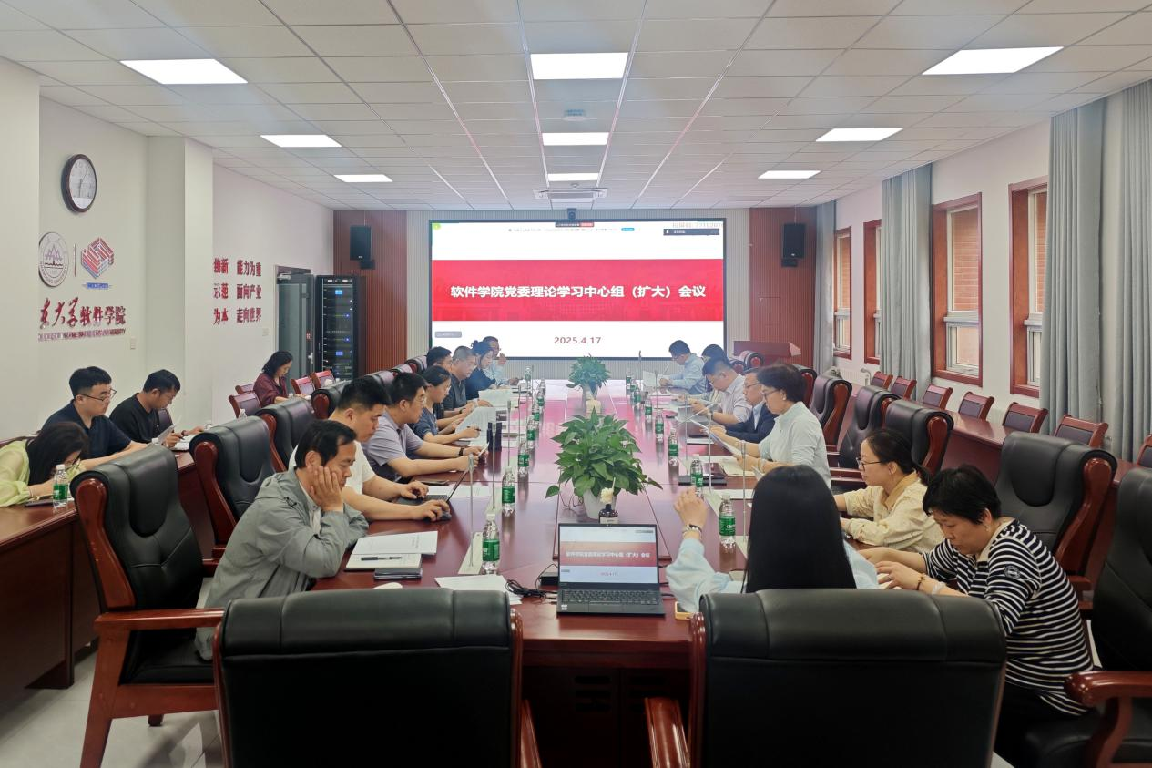4月17日下午,软件学院召开党委理论学习中心组(扩大)会议,专题学习习近平总书记近期考察时重要讲话精神。学院党委书记姜炳刚、院长崔立真,学院党委理论学习中心组成员,全体教工党支部书记、辅导员参加会议。