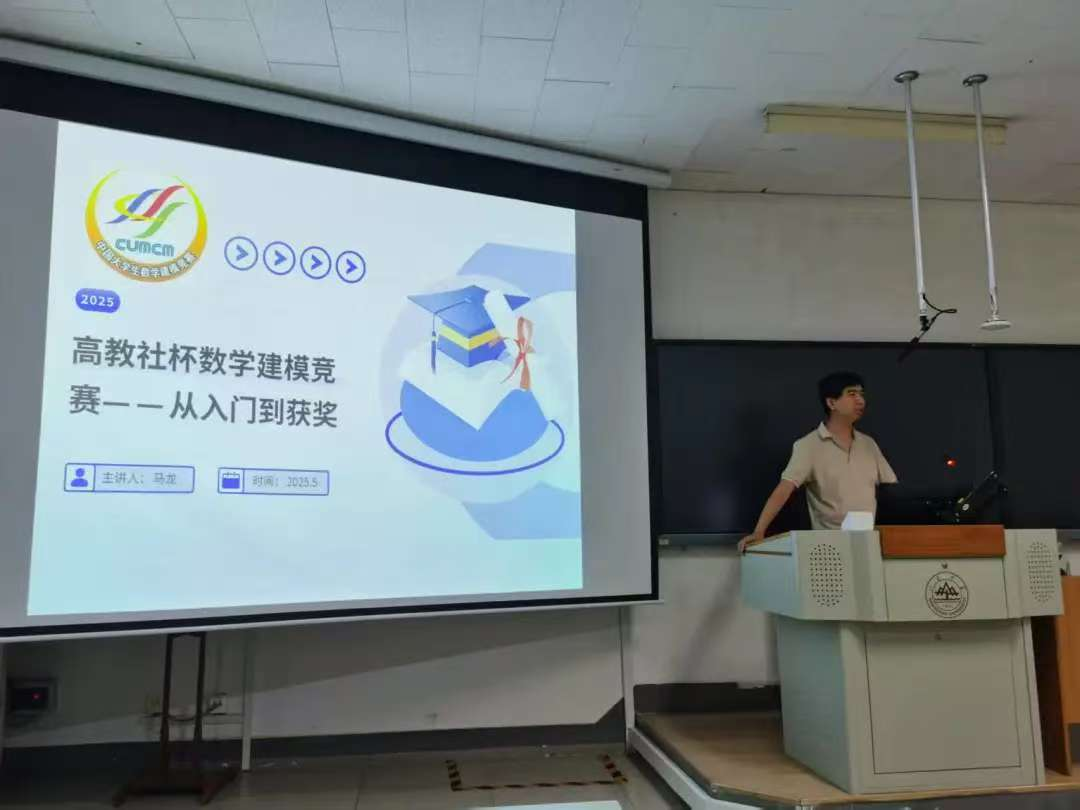 讲座伊始,马龙老师深入浅出地介绍了竞赛的背景、意义以及赛题的命题规律,指出竞赛不仅是对数学能力的考验,更是对综合素养的全方位挑战。他表示,数学建模的核心在于将理论与实际紧密结合,通过数学工具将复杂问题转化为可量化的模型,这不仅能够培养大家的科研思维,还能为未来的科研工作奠定坚实的基础。