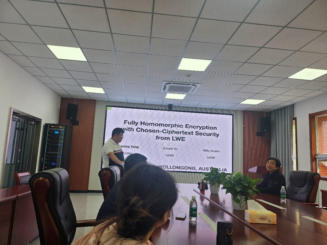 近日,软件学院举办“智能·软件·未来”论坛第3期,邀请澳大利亚伍伦贡大学杨如鹏博士作题为“基于LWE假设的CCA安全的全同态加密方案”的学术报告。