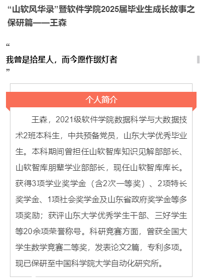 “山软风华录”暨软件学院2025届毕业生成长故事之保研篇——王森:我曾是拾星人,而今愿作缀灯者