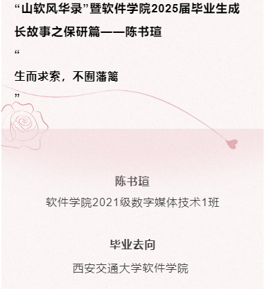“山软风华录”暨软件学院2025届毕业生成长故事之保研篇——陈书瑄:生而求索,不囿藩篱