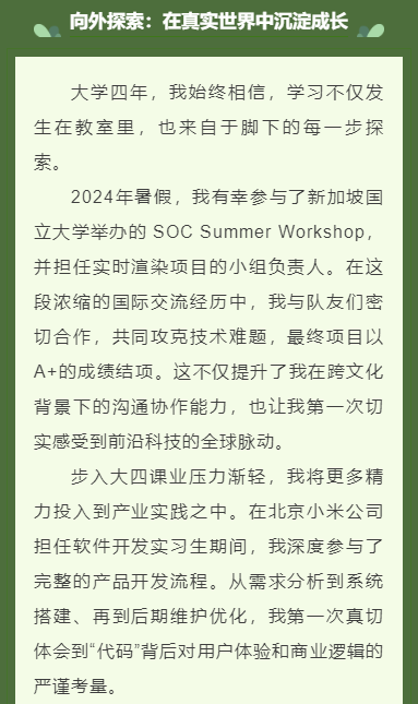 “山软风华录”暨软件学院2025届毕业生成长故事之保研篇——王槿瑜:且言且行,且和且鸣