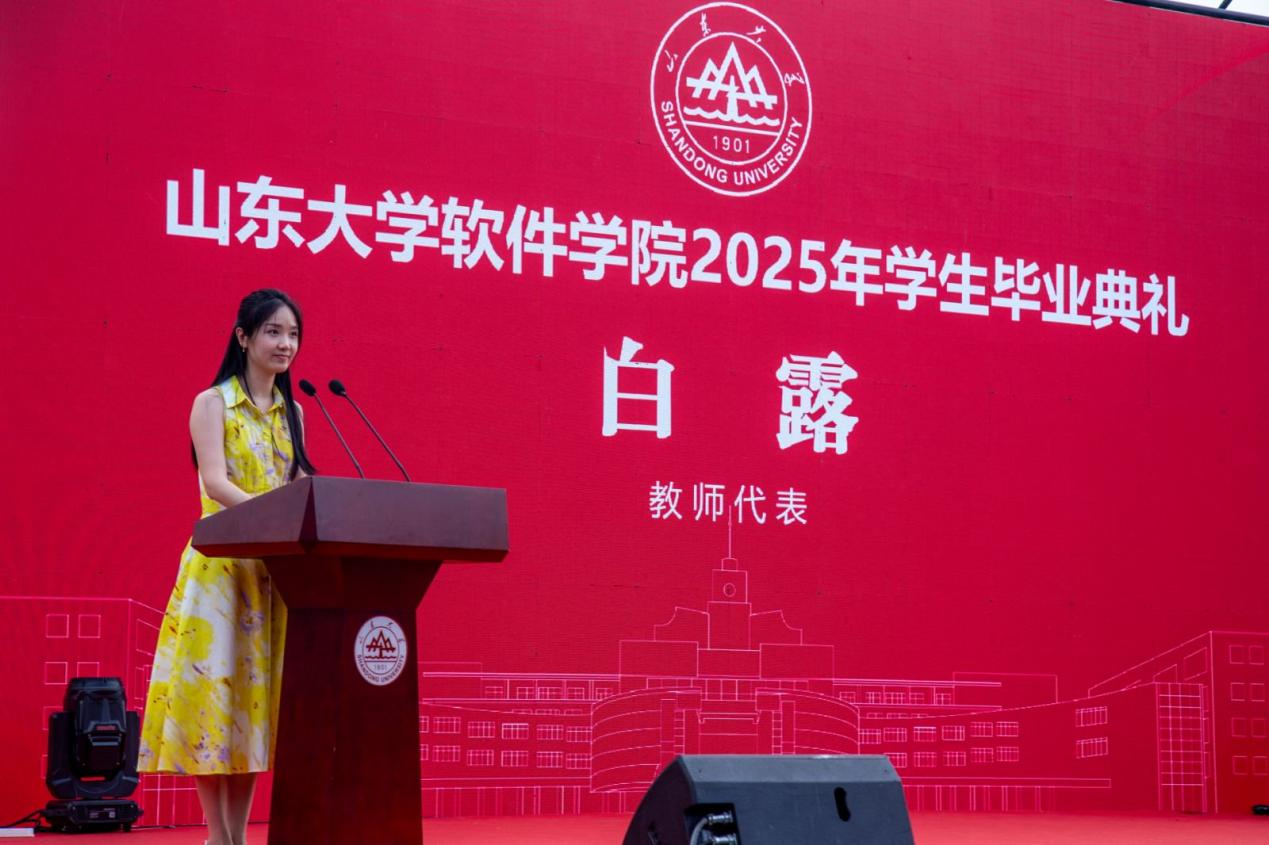 教师代表白露叮嘱同学们,要永葆“勇敢的心”,以开拓之姿破局未知之境;永葆“纯粹的心”,于浮躁洪流中守护技术的本真;永葆“善良的心”,以悲悯情怀书写科技的温度。她希望同学们不负韶华,不负时代,不负母校的培养,以 “学无止境” 的求索精神和“气有浩然” 的胸襟格局,在追梦路上勇毅果敢、步履铿锵。